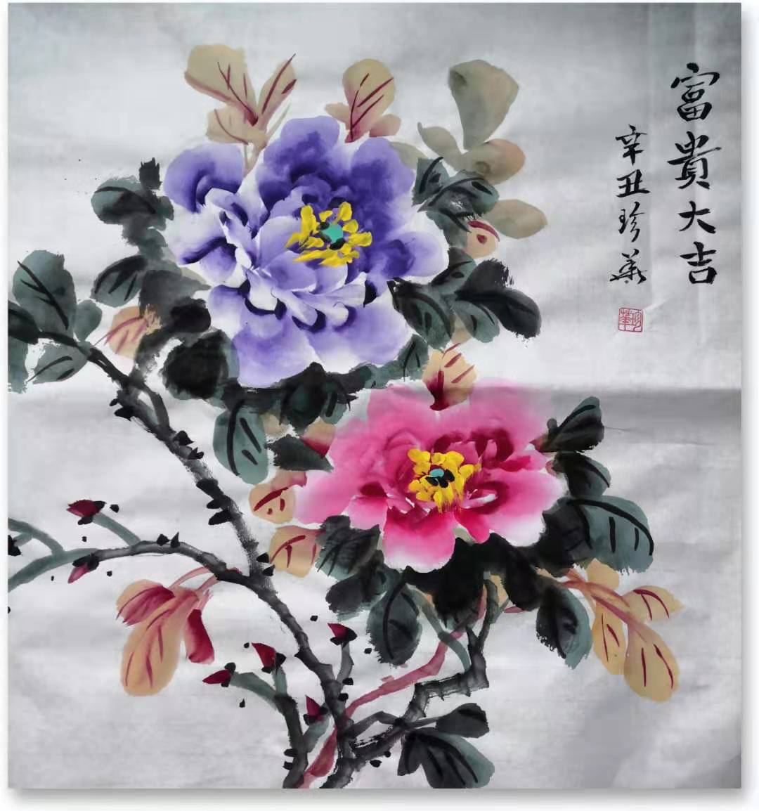 张珍华.女,1955年生于湖南长沙,中共党员,大专文化。从小喜爱写字画画,退休后参加湖南省老干部大学学习写字绘画。(师从写意花鸟画教授孔仁和)我执着绘画写意牡丹,得到湖南著名书画大师伍祥干指教,还得湖南书画名家彭志远老师指点,2017年到河南洛阳拜牡丹画家高全中为师。在研习写意牡丹绘画创作中,师法古人,根植传统,亲近自然,深入生活,立足时代扎根百姓,勤学苦练,全心研习,渐得心源,遂步形成自己的风格。