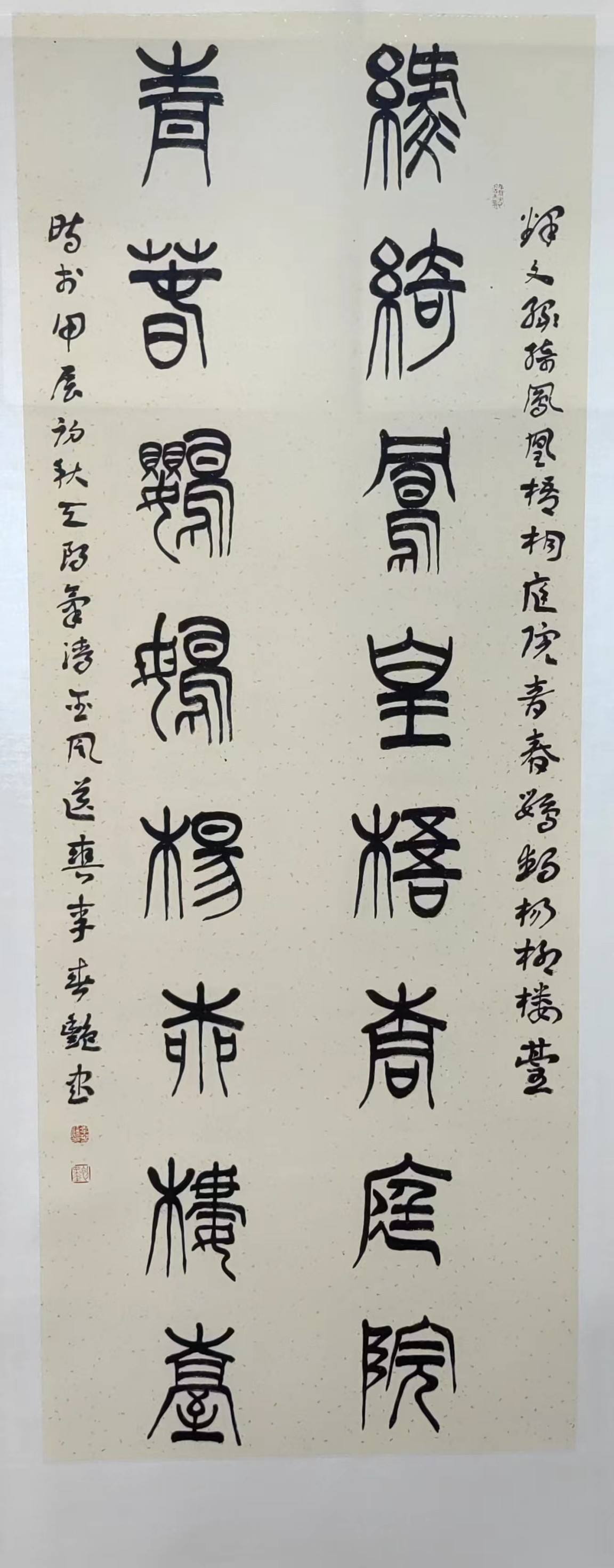 师从著名书法家李联合老师,五体皆能,尤其擅长隶书、篆书、楷书,后经中华双创“溯古通今”高研班的研修提升,受连辑、包俊宜、倪进祥等名师悉心指导,通过对甲骨文、金文、简牍帛书、章草等古典书体的学习,书法造诣得到了更高层次的提升,形成古朴、厚重、典雅的独特风格。
