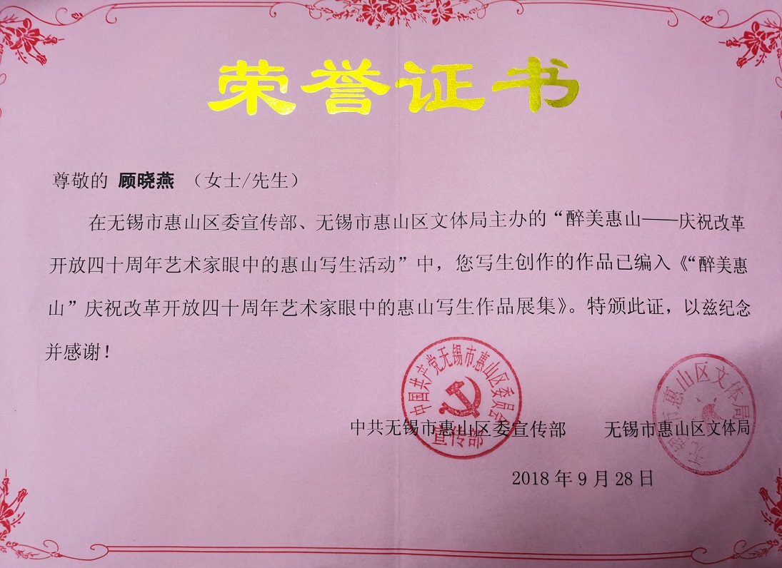 顾晓燕,江苏无锡人,中国女画家协会会员,江苏省美协会员,无锡市书画院特聘画师。作品多次获奖和被收藏。