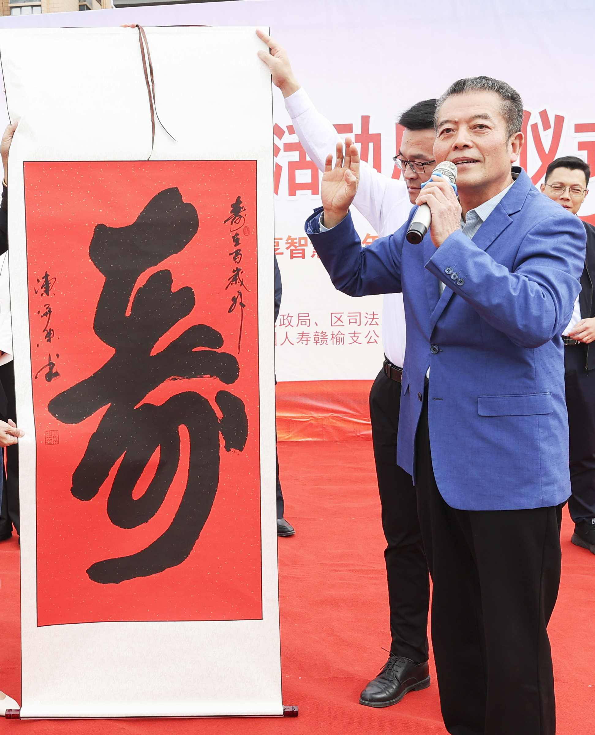 2015年创作榜书"寿"字在美国萨拉索塔国际艺术节展出,颁发收藏证书。