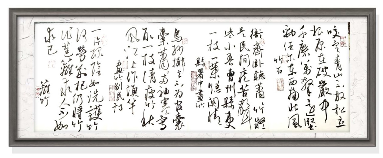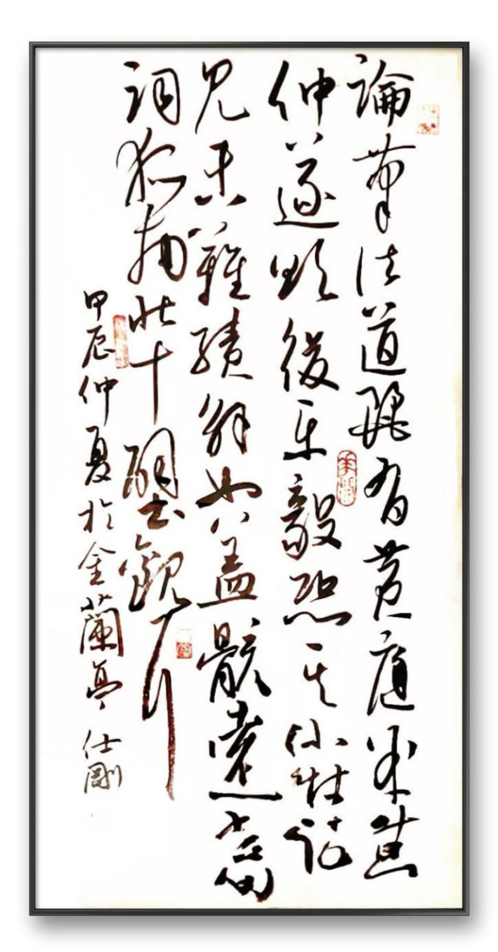 而他的草书作品更是激情澎湃,笔墨纵横,线条狂放而不失法度,字与字之间呼应连贯,通过墨色的浓淡变化、线条的粗细对比,营造出强烈的视觉冲击力,将草书的奔放与自由展现得淋漓尽致 ,给人以酣畅淋漓的艺术享受。