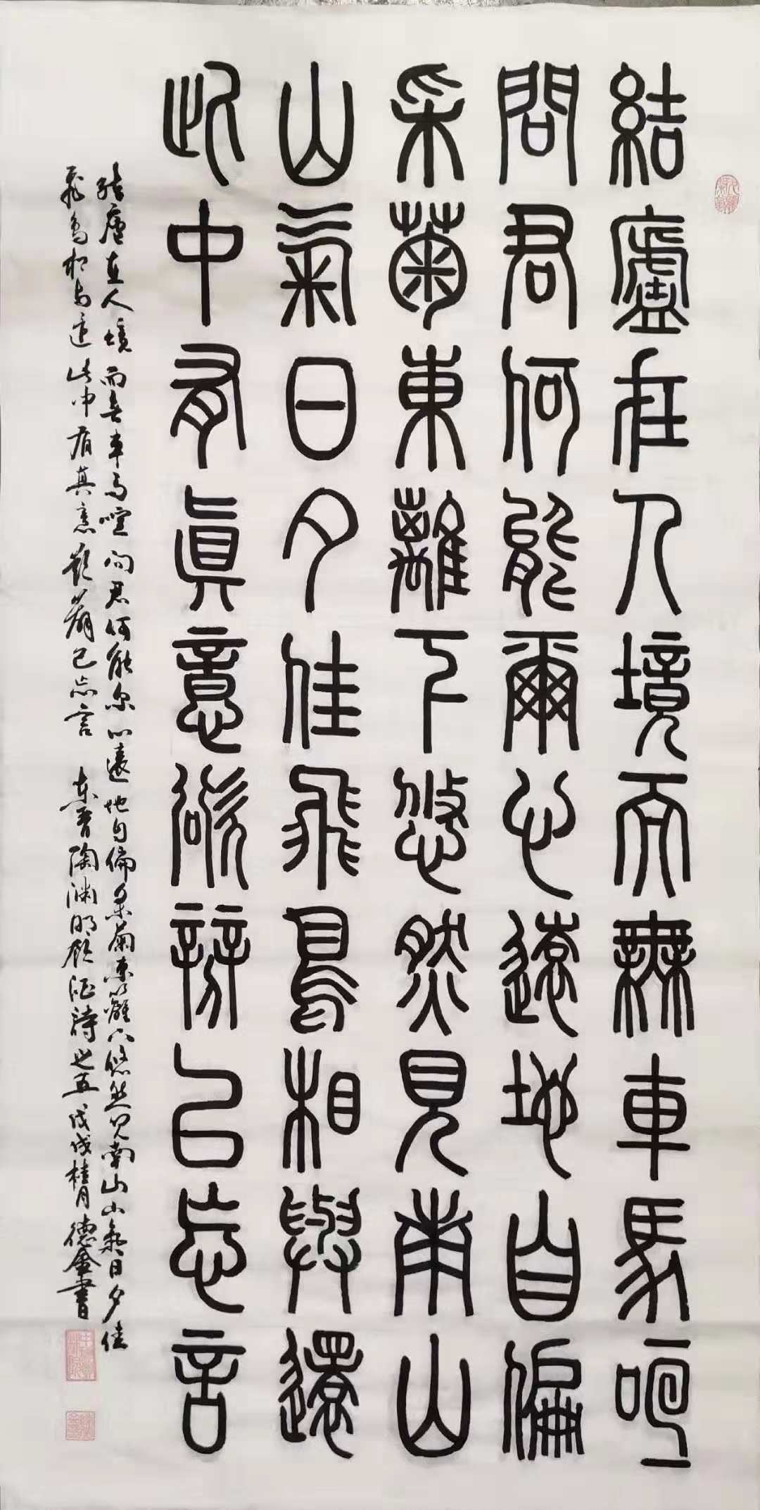 2016.07篆书作品,毛泽东《沁园春.雪》被《中国翰林书画艺术院》、《中国书法家协会》、《中国美术家协会》评为“王羲之奖全国书画展优秀奖”,并被邀聘为《翰林书画研究院》院士、副院长职衔。