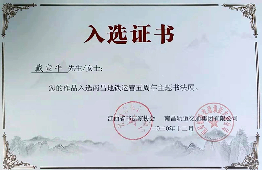 2020年12月入选南昌地铁运营五周年主题主题展;