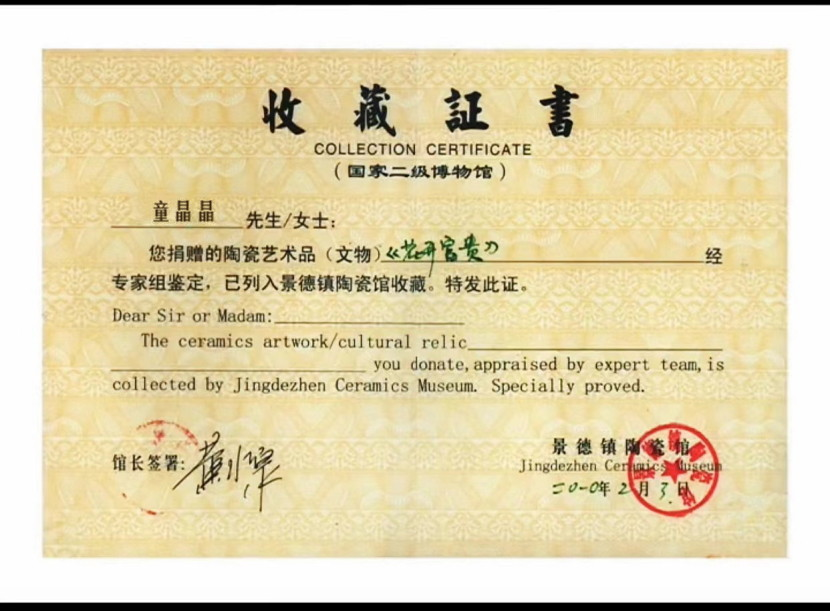 童晶晶不仅仅是景德镇陶瓷宣传大使,同时更有自己的三万平收藏馆--童窑陶瓷博物馆,并且与北京保利拍卖有限公司签约,与景德镇博物馆更是多有合作,在2022年为景德镇博物馆捐赠5件景泰蓝瓷器。