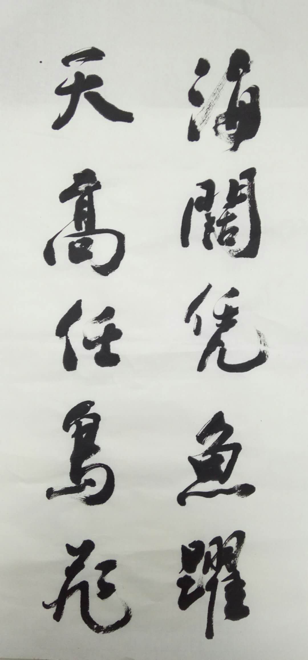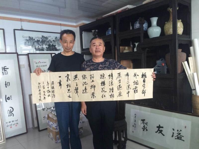 为南京牛首书院书周总理诗,左为牛首书院院长高海瑜先生