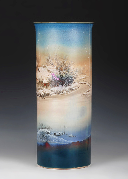 徐英 1969年2月生于景德镇,“珠山八友”何许人第四代传人,景德镇市非物质文化遗产传承人,江西省高级技师,江西省高级工艺美术师,江西省工艺美术家,江西省原创工艺美术大师。先后毕业于景德镇陶瓷职工大学,景德镇陶瓷大学艺术系,获学士学位。中国工艺美术协会会员、江西省工艺美术学会会员,景德镇市女陶艺家协会会员。景德镇青年画院常务理事;景德镇抚州商会理事。自创“临风轩”艺术工作室。擅长雪景、兼色釉、泼彩等技法,长期致力于多种艺术形式的探寻与研究,利用色釉窑变及泼彩肌理与绘画相结合,形成自己独特的艺术风格。