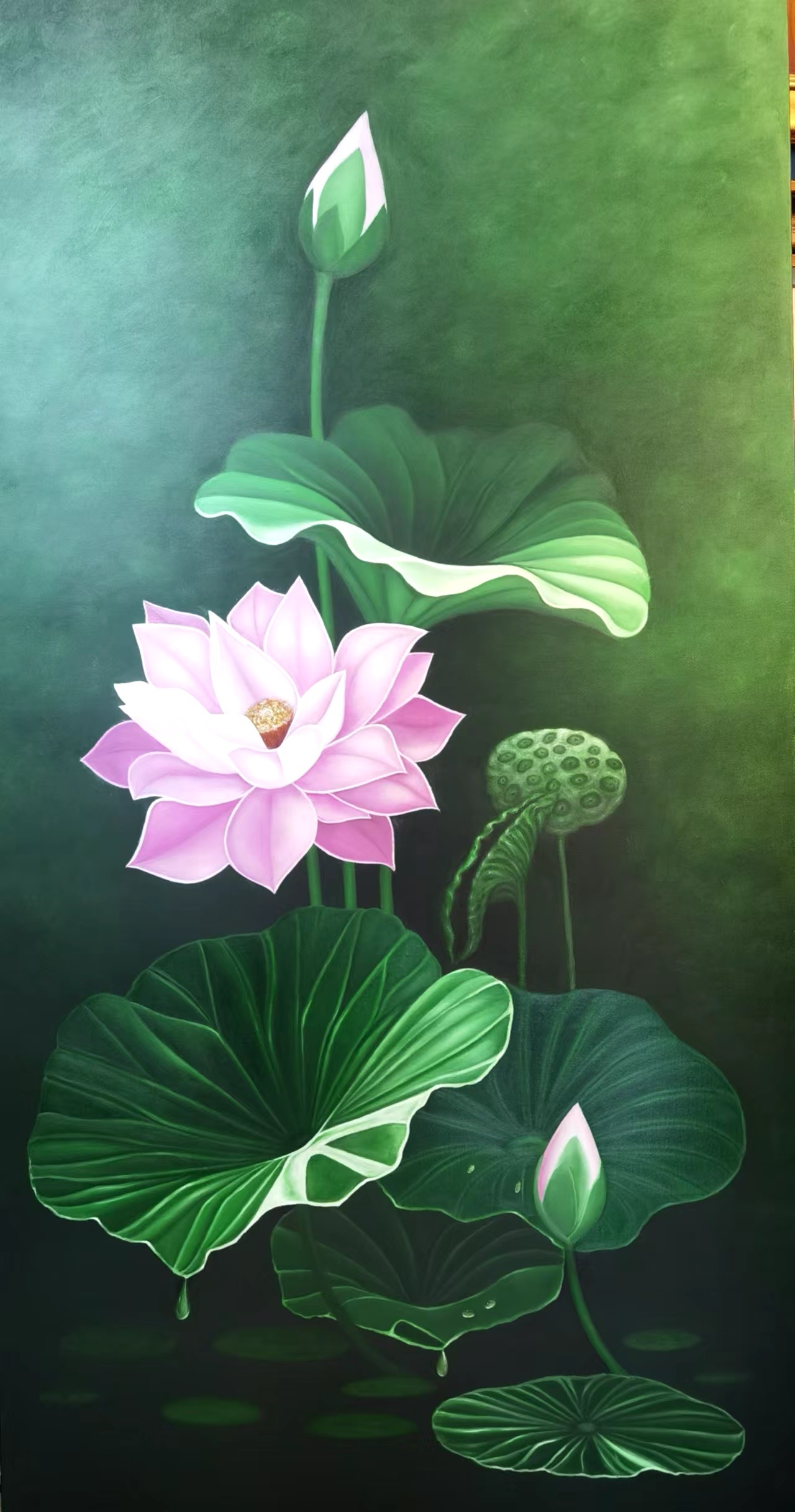 一位陪孩子画画的妈妈,从此爱上了绘画,放弃了国企工作,一心钻研绘画。崇尚新古典主义和浪漫主义的绘画特点,以其独特的艺术风格来主观表现浪漫主义的情感、热情和想象力。强调了个体的情感表达和对社会现象的直观感受,使得作品充满了生命力和感染力。