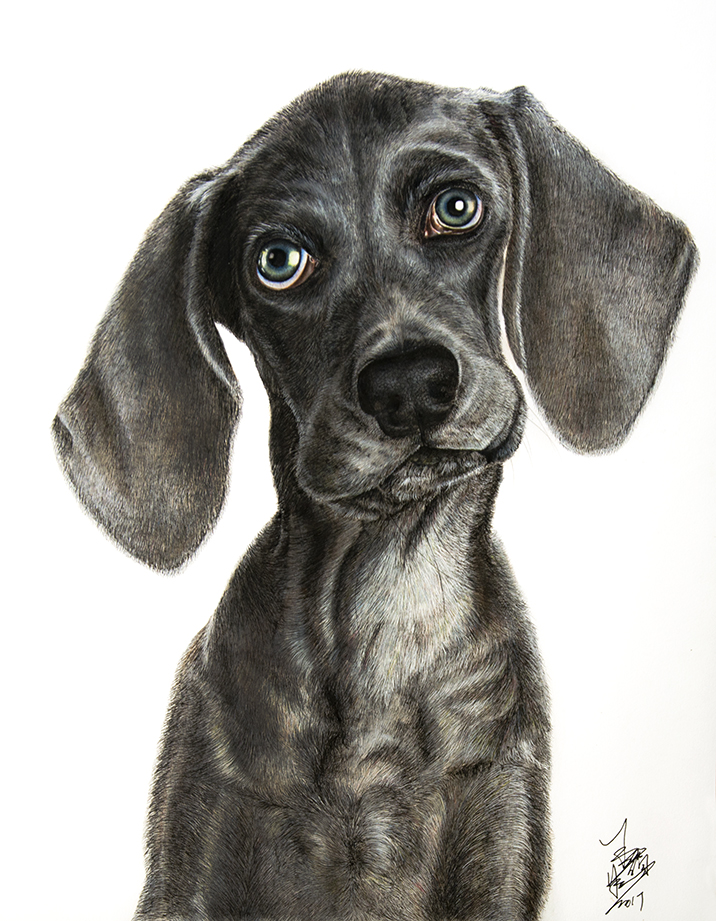 >画作《腊肠犬》被中国金属艺术工艺大师石洪祥老师收藏