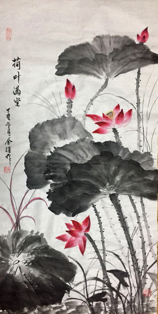 >作品《荷叶满堂》在公益组织“狮子会快乐行服务队”慈善拍卖晚会拍卖;