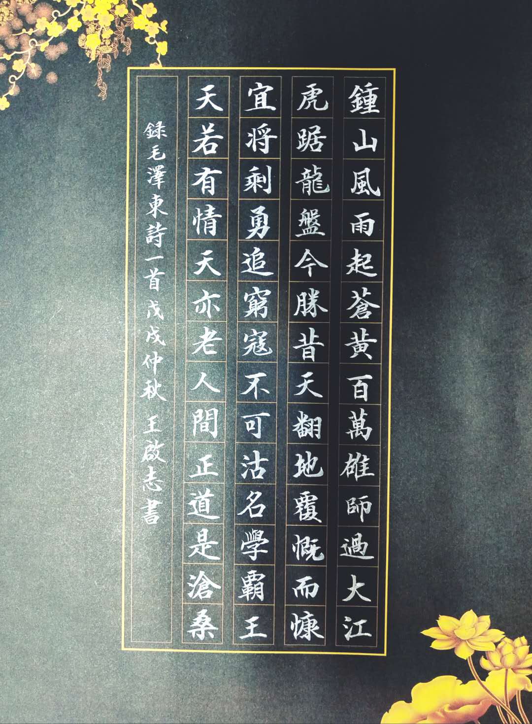 王先生青年时期在文艺宣传队工作,吹拉弹唱、写写画画样样皆可,这种爱好一直陪伴终生。后来赴深圳发展,也日日研墨习字,从未间断。老老实实做人、工工整整写字是他的一贯信条。在深圳经商二十多年来,他以沂蒙人的纯朴和文化人的儒雅受到了各界好评,多次被特区有关部门评为优秀企业家,并被特区政府作为儒商代表进行宣传。为了实现自己多年的书法梦想,几年前就把企业交给孩子打理,自己全身投入到书法学习和交流中,并在深圳成立了翰墨文化艺术培训中心,致力于文化事业发展。中心成立几年来,他多次组织文化下社区活动,培养书画、歌舞爱好者,使当地“打牌的少了,写画的多了”。他也先后被当地中小学校聘为国学辅导员,在推广书法教育的同时,也注重宣传齐鲁文化,得到了相关部门的高度评价。
