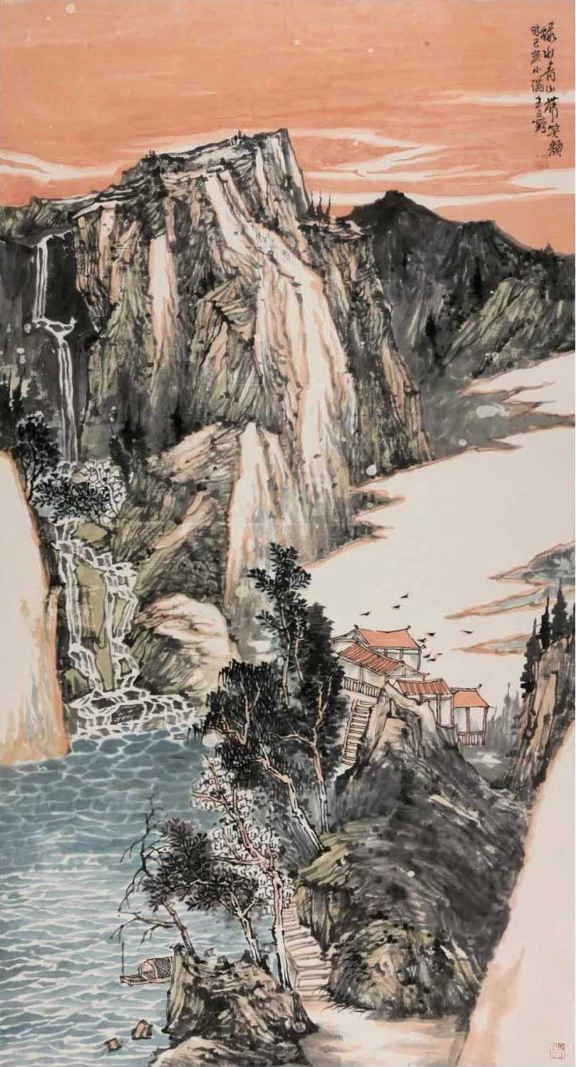他的山水作品做到了“继承中国传统笔墨”和“笔墨当随时代”的完美结合。他几十年来一直潜心于浩瀚传统绘画中,心摹手追,与古人对话,感悟传统绘画中的笔墨技巧和精神追求,在传统笔墨表现上打下扎实功底。因此他的作品中呈现了深刻的对传统绘画的继承,以及纯正的笔墨意趣。他也并非只是沉浸在传统中而乐不思蜀,深信写生为大,广泛汲取当今美好时代所给予的滋养。几十年来遍访名山大川,创作了无以数计的速写和写生,外师造化,中得心源,以生活和造化的观察完成 “笔墨当随时代”的追求。因此,他的作品中具有那种浓浓的生活气息,和对当代社会发展的自我关注。