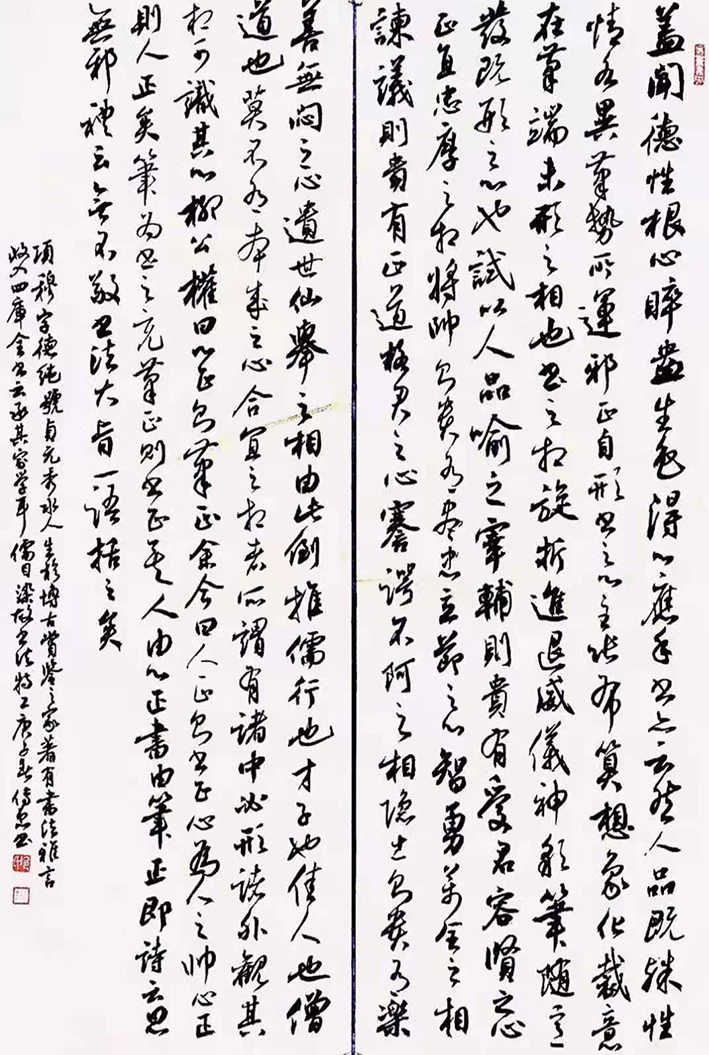 自幼挚爱书法,临池不辍,根植传统,承袭二王一脉书风,擅行草。