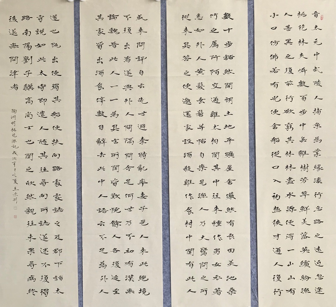 王崇刚老师多年来刻苦研习书法,临摹碑帖,在揣摩楷、行、草、隶等诸体的精髓前提下,通临汉、唐、晋、宋、魏各个时期的名家碑帖,集众多名家之长,经过几十年的潜心研习,使其书法艺术长足进步,形成了自己独特的风格。其书法五体皆能,尤精行楷,结构之严谨,间架之优美。其作品如行云流水,气魄宏大,意象开阔,字体婉若游龙惊鸿,起凤腾蛟,蕴涵着极强的体式与爆发力,潇洒灵动中而又不失本真与严谨。其作品得到了欧阳中石、沈鹏、刘艺、张海等书法大师的高度评价。作品受到了国内外书画专业机构和收藏机构的高度青睐和追捧。他的参赛作品屡获好评,国家级特别金奖20余枚个,银奖5个、收藏于国内外各大私人博物馆、美术馆,是极具收藏潜力的青年书法家。
