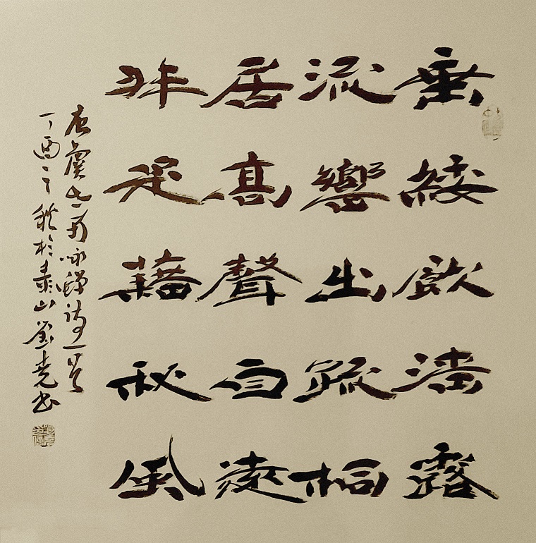 “寒泉漱玉,秋鹰入林,虎跃苍穹”。人们欣赏刘尧先生的书法作品总是被他那独特的艺术魅力,带入奇丽的学术书法艺术境界之中。他的书法之所以引起艺术收藏界及社会的广泛关注和青睐,是由他那特有的学术品质所决定的。他以深邃的学识和精湛的笔墨,通过形质而达到风韵神采的无限境界,从而形成了风度绝俗、品质超凡的学术型书法风格。在他的书法作品中,古典神髓与个性特质交融升华,整体气势和细节精致谐调而统一,韵、法、意、形完美结合,书法的艺术生命熠熠生辉。这正是他的书法作品受到广泛欣赏之所在。