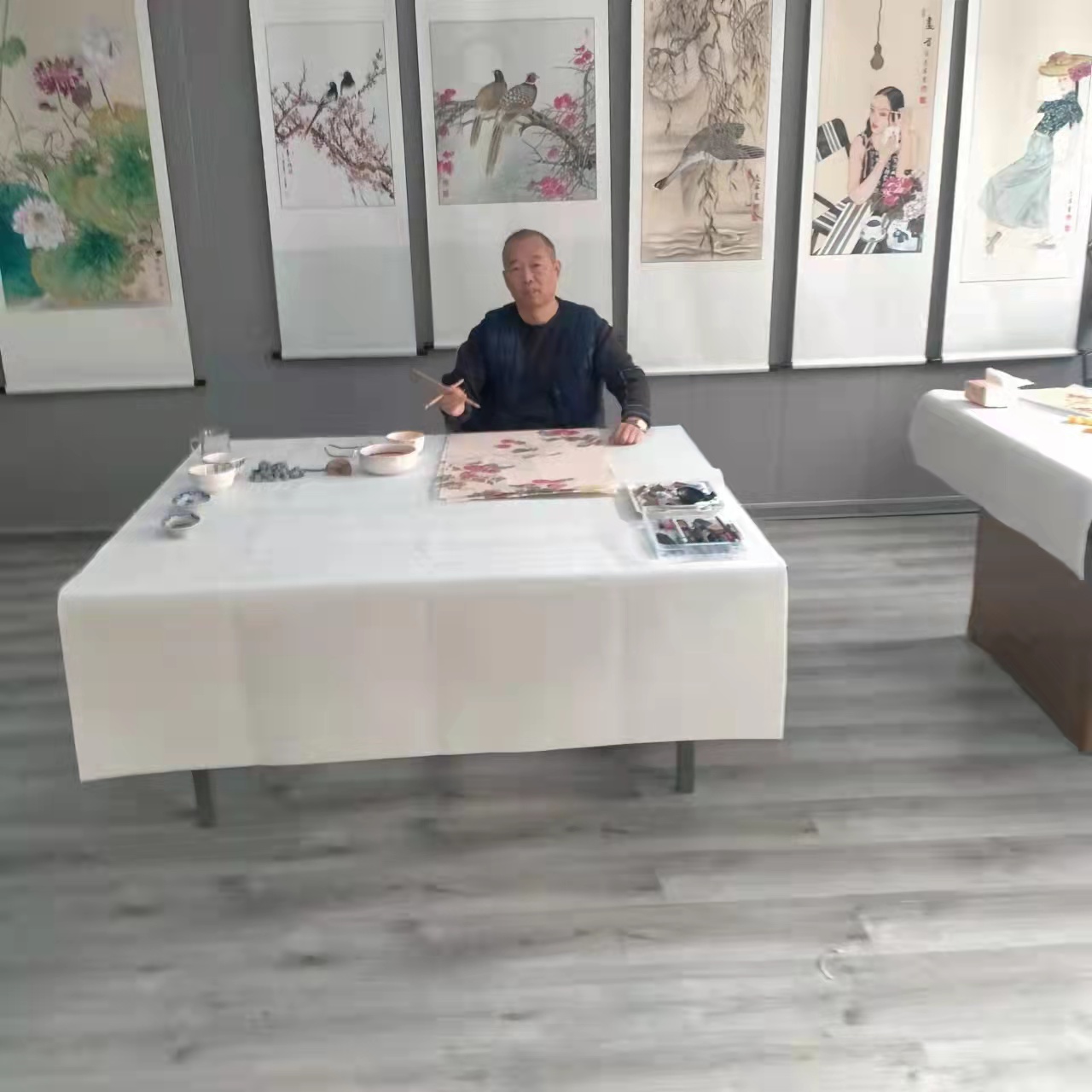 刘志军,字倩鸣,号晚秋,自幼习画,拜师于德州名家陈志远,李景勤老师,现为德州美术家协会会员 ,长河书画家协会会员 ,中国美术家协会(香港)会员,2021年,作品《雪域高原》被山东省文化旅游厅收藏,2022年被编入中国文化艺术人材库,近年多次在国内的书画大展中获奖,常年从事艺术玻璃画的设计与制作,2013年曾被评为中国建材系统的优秀书画艺术家称号。