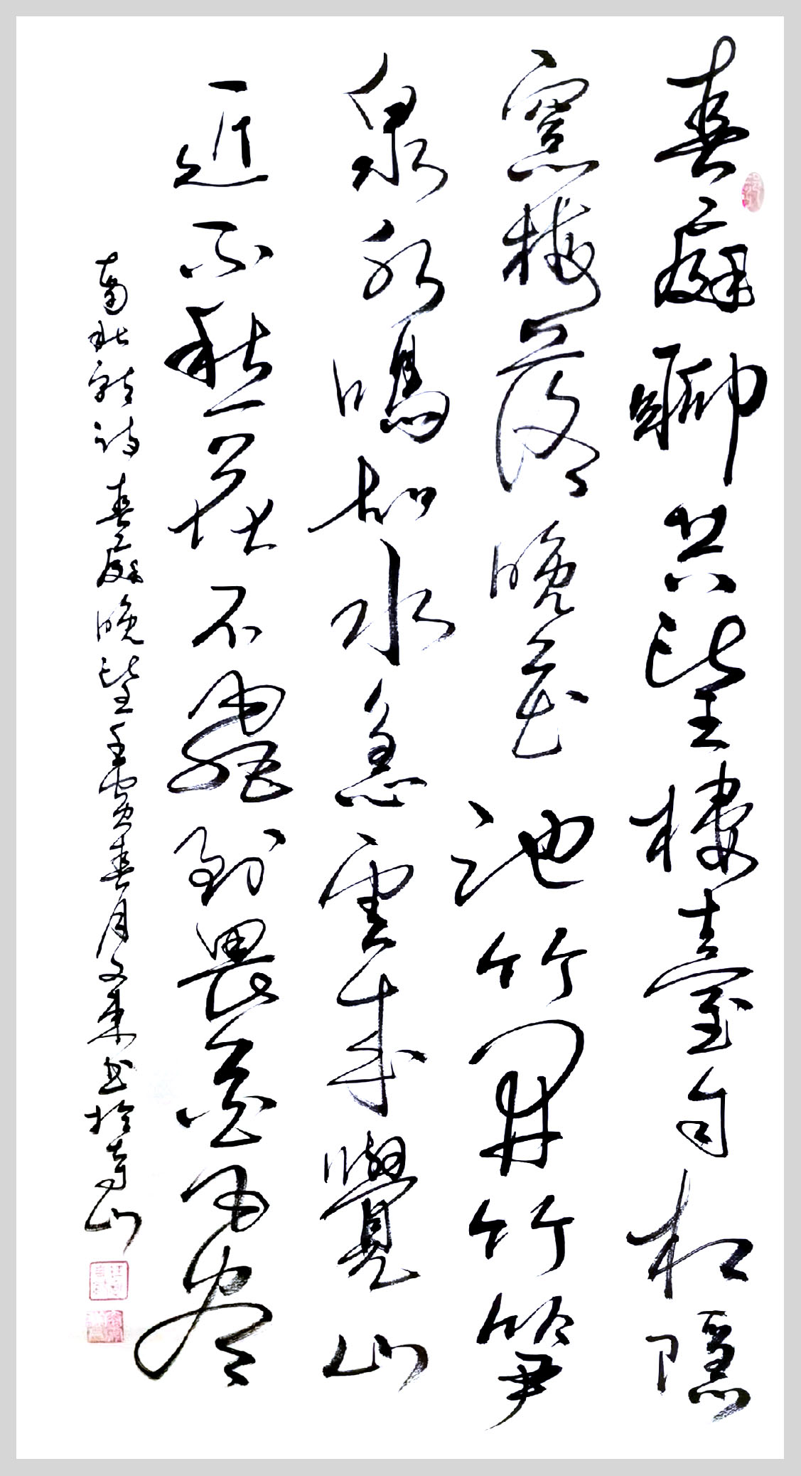 自幼酷爱书法,由颜柳入手临习,再研磨二王法帖,常读张旭,演练王铎,揣摩米芾……经春历秋,寒来暑往,痴心不改。所谓名利皆淡,只在修心养性,惟愿生活充实,为人生徒增雅趣,自娱自乐而已。偶逢赛事,小试牛刀,只为检测自我,作品先后在行业内参展并获奖。