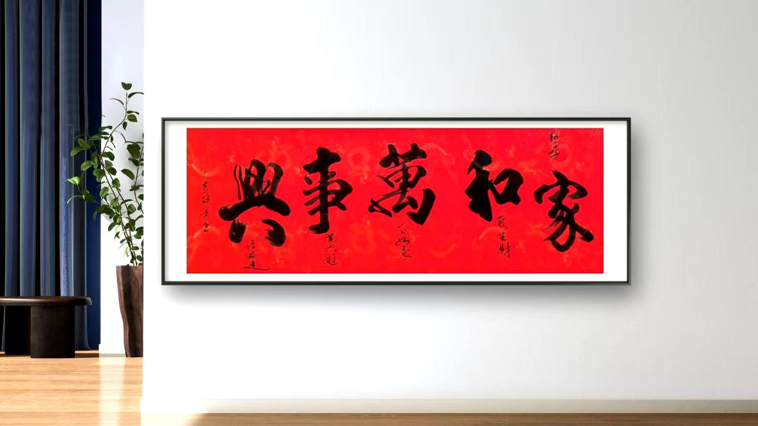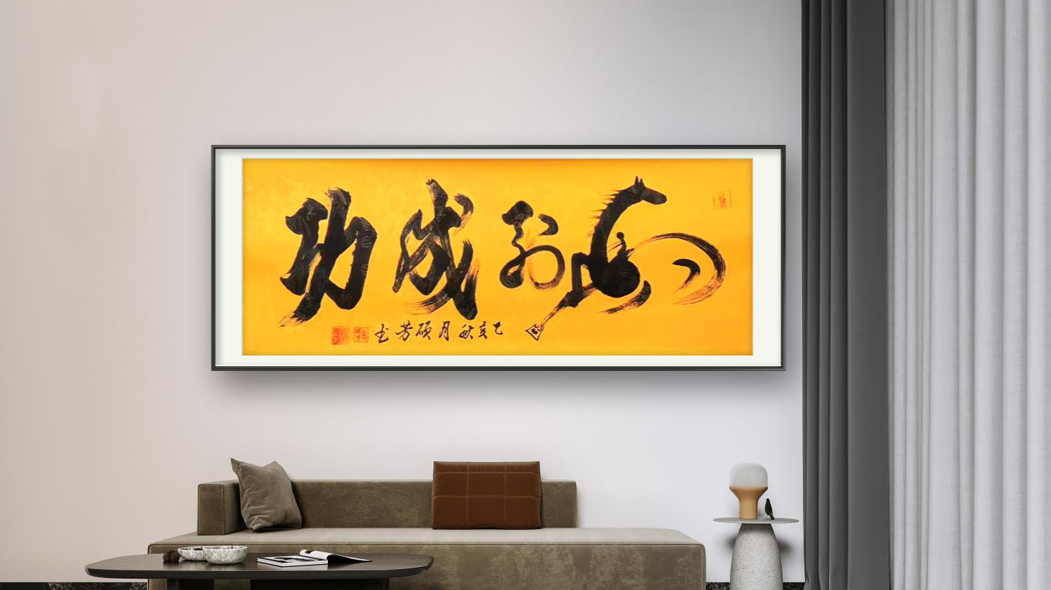 近年来,他的艺术成就得到了业界与市场的双重认可:多次受邀参加“全国书法篆刻展”“中国榜书艺术大展”等顶级赛事,其榜书作品屡屡斩获金奖,成为书展中最受关注的焦点之一;《人民日报》海外版、《书法报》等权威媒体多次对他进行专题报道,称其“以笔墨传承文化,以榜书彰显国魂”;更有多幅作品被中国国家博物馆、中国美术馆及多个驻外大使馆收藏,其中《厚德载物》被作为“国礼”赠予国际友人,让中国书法的魅力走向世界。而在收藏市场上,他的作品也因“艺术价值高、升值潜力大”成为藏家争抢的对象,当前4000-6000元/平方尺的润格,既是对其艺术水平的肯定,更是对他数十年艺术坚守的回馈。