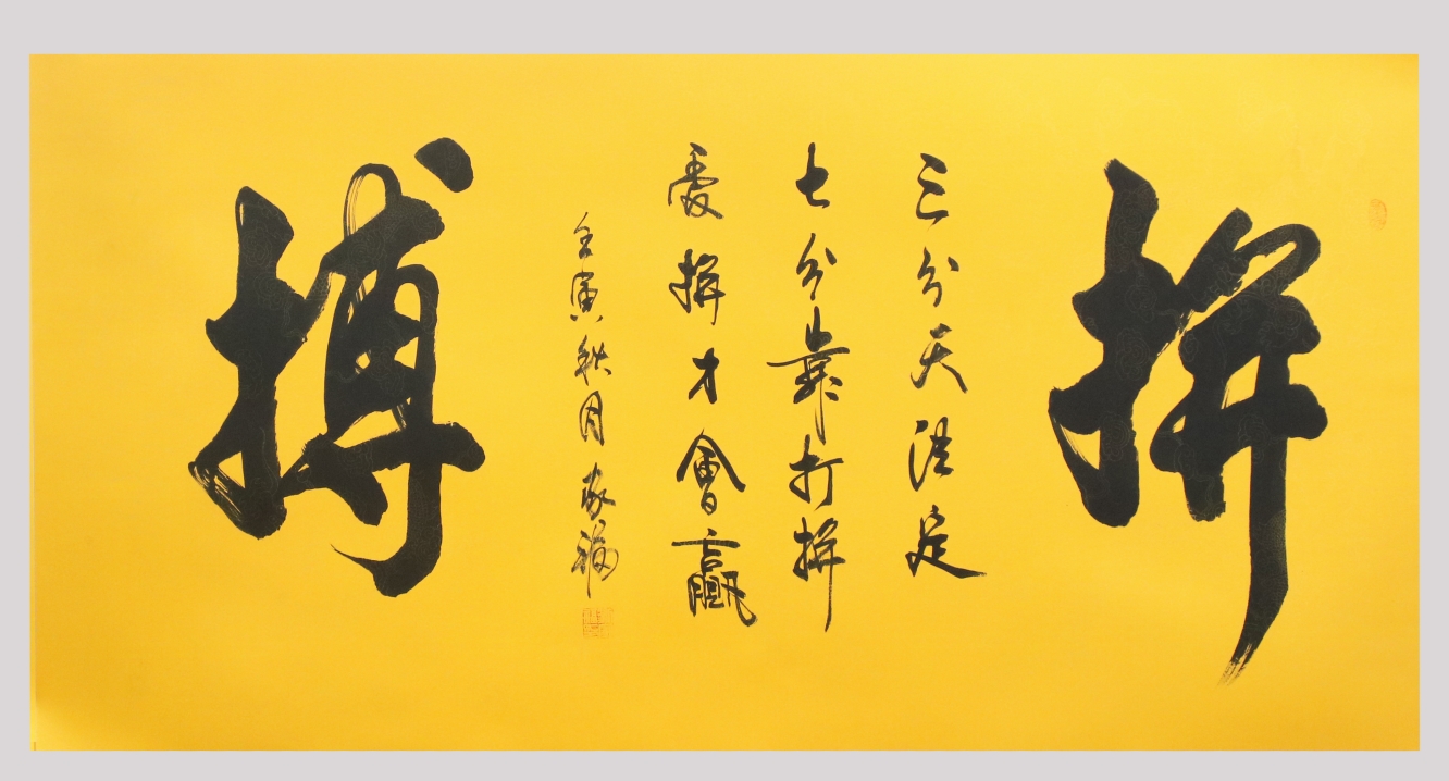 刘家福自幼出生书法世家,受祖父启蒙,研习书法,后拜入武中奇,启功两位先生门下,得其亲传,临池40余载,形成了自家风貌、其作品庄重大方.方圆并用;或骨气润达,行云流水或道法自然,意境深远;风格俊逸,章法神妙.启功先生评价其作品为:“既有舞蹈的华姿,亦有音系的旋律,是不可多得的佳作。作品参加香港多地及国内外拍卖会,经中国书画评化委员会评定其润格为6000-8000元平方尺。
