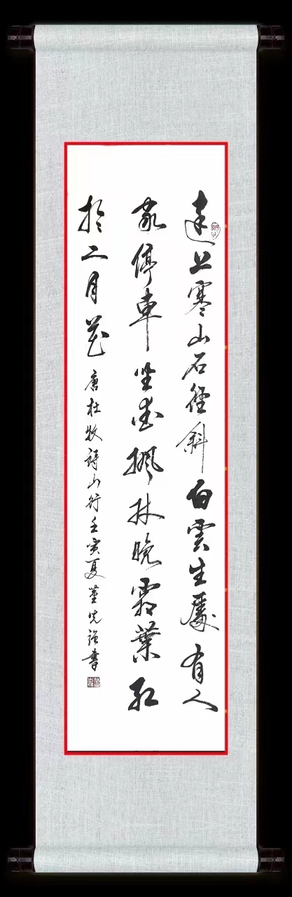初识董先强先生,是因为书法大家丁跟牢先生。我身处铁路基建行业,经常参加行业交流会,而丁先生是各类会议举办方常邀、特邀贵宾,丁先生书写精美书法作品,被作为会议活动礼品赠送与会嘉宾。认识丁先生久了,也慢慢结识了丁先生的几个书法得意弟子,其中就包括董先强先生。丁先生培养指导弟子的方式,是将书法理论和实践指导相结合,经常要各弟子定期带学书作品到工作室进行现场教学,教学相长,各位弟子进步都很大。众位弟子书法特点各有所长,董先生在这些弟子之中表现比较特别,因为我从结识之初,就感觉他的书写风格在多位师兄弟之中最像老师丁先生。后来,随着相互接触增多,逐步了解到,他经常到丁先生工作室现场观摩学习丁先生从书法作品的构思、规划和书写的整个过程,从笔法结构、篇章布局,下笔的轻重缓急,书写气势的上下连贯,通过认真观察、仔细琢磨,勤练不辍,做到了首先从“形”上靠近丁先生,当时已有腾飞的迹象。但好的书法作品,贵在其内在所蕴藏的精神气韵,若不能在“形似”之上进一步做到“神似”,形成、保持、发扬自己风格,融入自己的理解和创作,则作品终将失去灵魂。董先生在这方面更是下了更大的功夫。他将丁老师以及历代名家各种作品存在手机中日夕对之揣摩、钻研,将自己对书法的理解付诸笔端,勤加练习。并经常将自己的书写作品送丁先生进行点评。功夫不负有心人,经过十几年的潜心学习、不断提高,现在董先生的书法作品可以说是“形神兼备、气韵俱佳”,且在楷书、行书、篆书等方面已具备了自己的风格,已有“青出于蓝而胜于蓝”之势。董先生对于书法这门中国传统艺术的挚爱,多年来一直不减,并且随着日复一日、年复一年的潜心苦练,书写的作品已经具备大师级标准。董先生已决心在弘扬中华传统书法艺术的道路上继续不懈追求、永不止步,他的书法作品水平也必将“百尺竿头更进一步”。