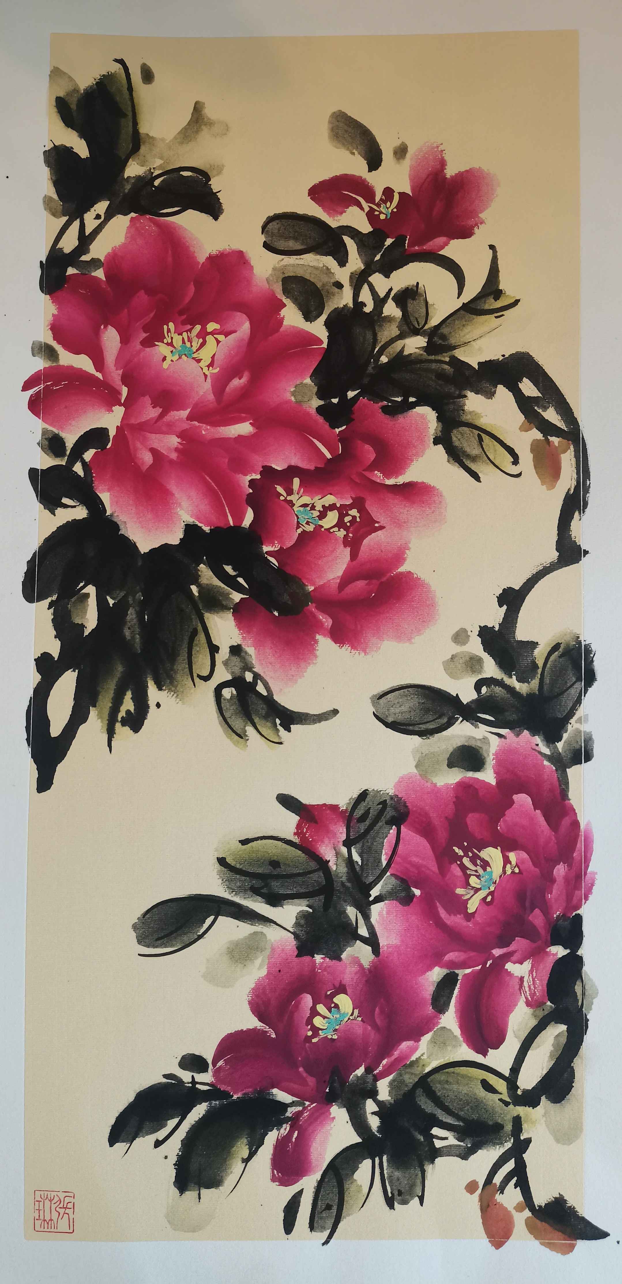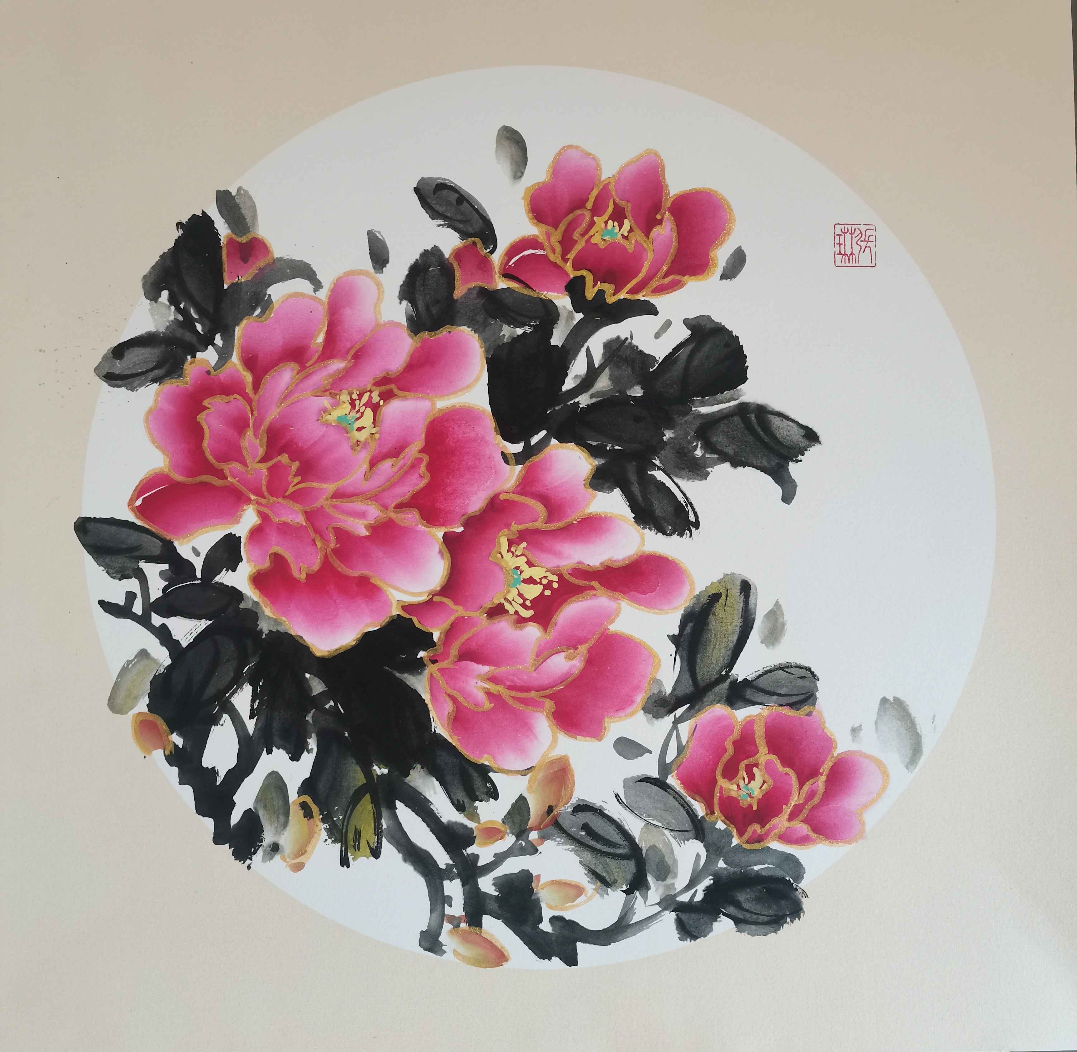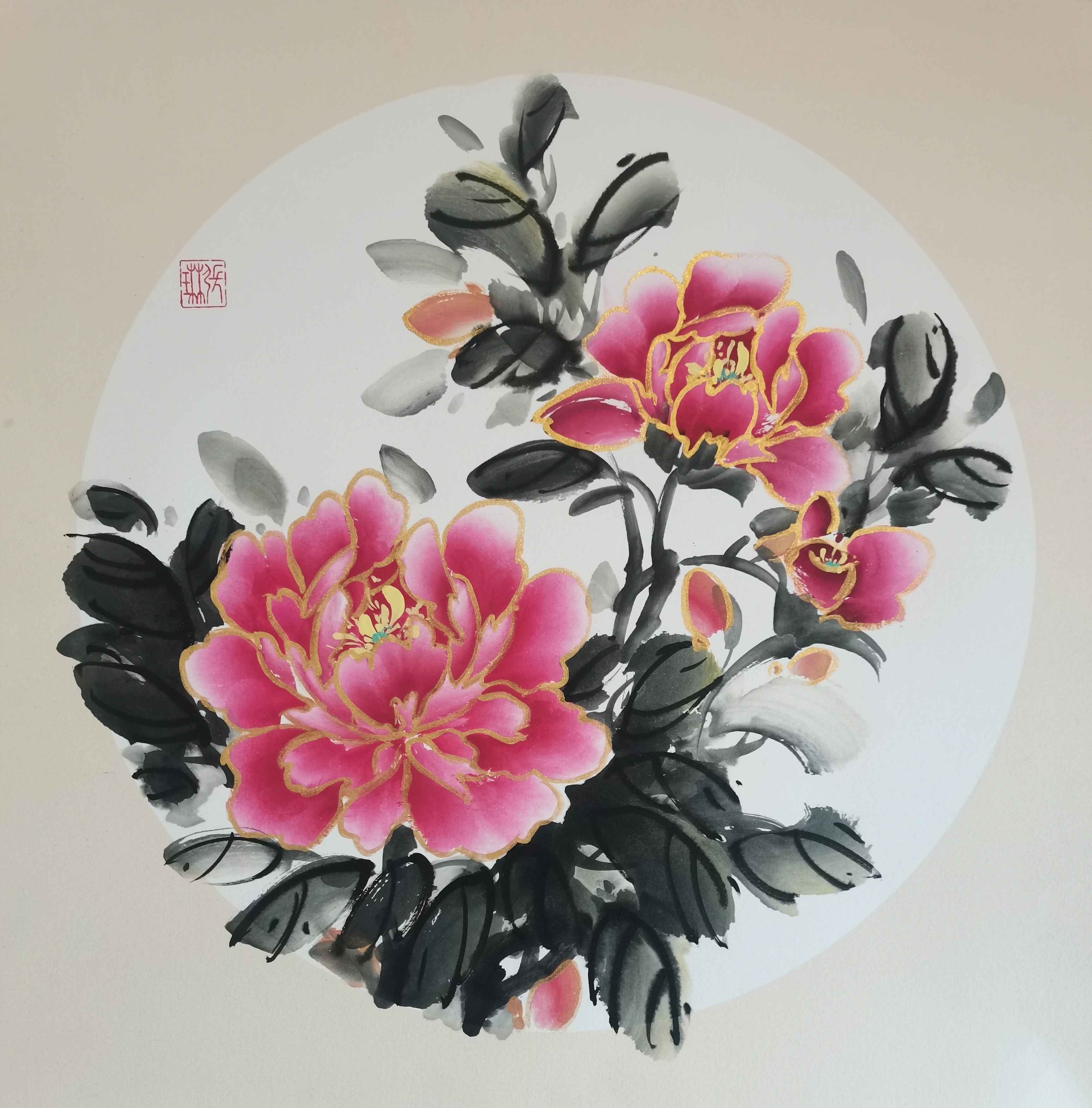 长期从事教育行业的张琳,更擅长总结经验且反思进取,好友交谈间,她也不禁跟大家分享牡丹画法,眼前的这些作品和她极好的人缘就是个很好的例证。