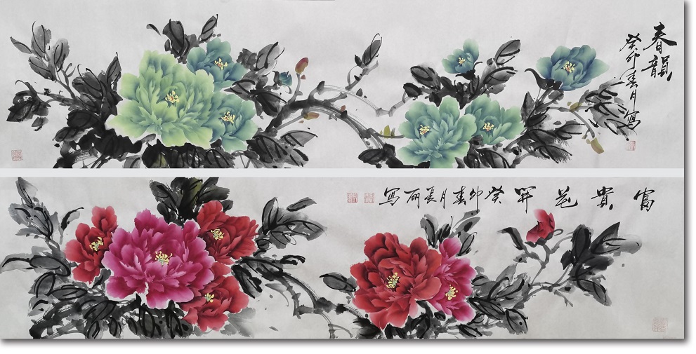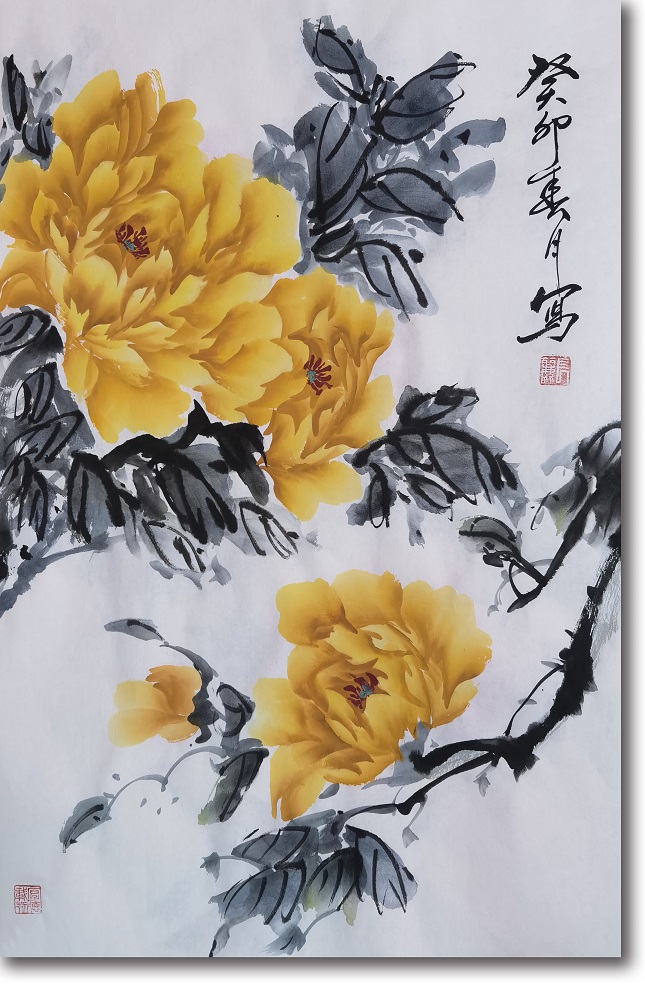 2022年开始,怀着对写意牡丹的钟爱,她又数次前往河北沧州,师承会派牡丹创始人李会教授,对写意牡丹的用笔用墨、画面构图极尽讨教,用心领会,反复揣摩,研习不辍,创作水平与日俱增。