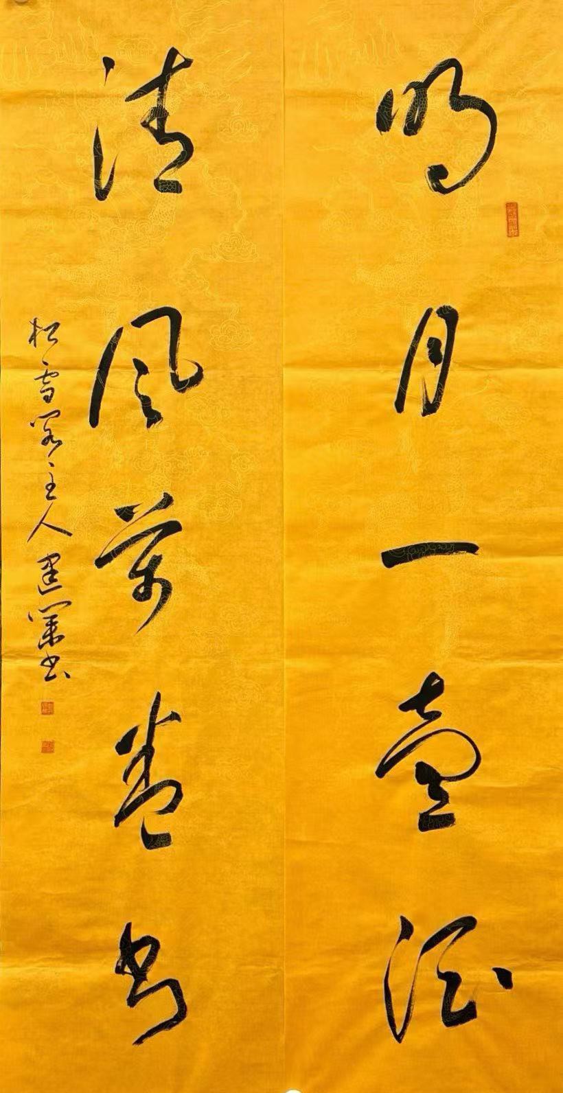 郭建业,1966年出生于山东滨州。先生多年来潜心研习书法主体结构,尤以草书见长。对历代草书都有深刻的研究和学习。特别对近代于右任先生的书法做过细致的研究和学习。作品终得于右任先生的风骨和旨趣。先生把富含金石气的碑刻笔画和充满书卷气的帖学草书相结合,创造出草书的新气象,打破了“碑不入草”的传统。古朴厚重的魏碑和流畅秀美的草书终于在先生笔下形成了碑帖通融,骨韵相生的完美结合。就具体笔法来讲,传统的草书线条风格特点是自然流畅,通过提按来增加粗细变化,先生则在提按变化的基础上通过裹束和铺毫,绞锋与破锋,中锋与侧锋,以连续的手腕翻转和锋面调整来丰富线条形态。使每个笔画中有了变化,极大的丰富了线条的内在表现力。先生书法中苍劲雄强的力量感主要来源于中锋用笔。历代书法家通过长期实践积累了丰富的经验。总结出“含笔心常在点画中行”、“笔画中实”。实验出“藏锋”、“涩行”、“中锋运笔法”最能给人以力量感。我们欣赏郭建业的草书,总能感觉到充满着流畅自然与沉着痛快。郭建业的草书很少见到侧锋,主要采用轻重提案顿挫等手法产生笔画粗细强弱,薄厚的变化,从而表现出用笔的节奏和韵律。