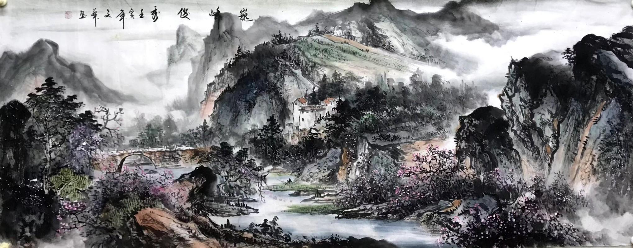 吴文华的作品以“承古开今”为核心理念,既注重传统笔墨的意境表达,又融入现代构成与色彩语言。其山水画层峦叠嶂、气象恢宏,人物画则形神兼备、富有哲思。她主张“艺术当随时代”,致力于通过水墨语言传递东方美学精神,同时回应全球文化语境下的艺术对话。