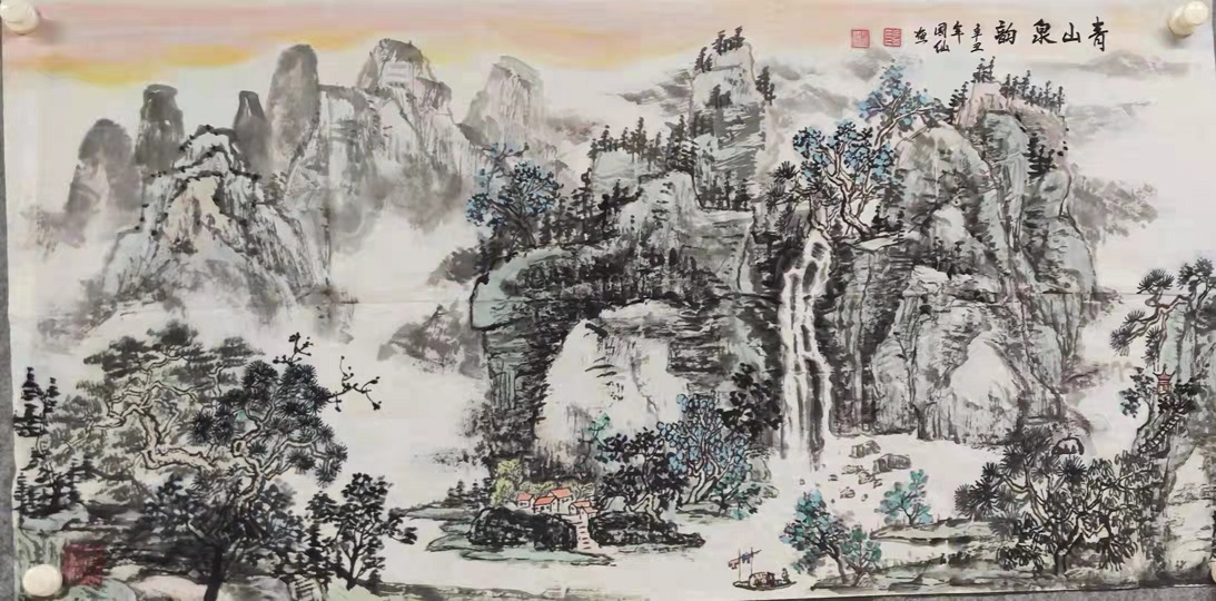 孟国仙:女:1967年出生于山西,自幼喜欢绘画,尤其对山水画情有独钟,师从白雪石的弟子,白云乡的弟子,施贞泉老师、还有河北名家宗哲成老师。现为国家一级美术师,北京通天彻底委员会委员,中国民间书画研究会理事,河北老年书画研究会会员,扇缘分会会员,石家庄美协会员。作品气势磅礴,画面气韵生动,笔墨世界里融入了自己的审美追求和人生信念,使观赏者在空谷幽泉中感受到那份久违的清新和远离尘嚣的宁静。曾在2020.2021全国民间书画大赛中连续两次荣获金奖,第三届全国书画精品大赛中荣获银奖,2020年在全国市书画联赛中荣获金奖,2021年首届顺达杯《云峰春晓》作品入展并被收藏。作品《太行深处钟声鸣》在2021年入选第八届全国女书画家作品展,并被收藏,2022年作品被评定为国际文化交流礼品,并授予“国礼艺术家”荣誉称号。同年作品入展“妙笔丹青”百年风华,首届翰墨流芳颂党恩七一书画展,并被收藏。作品曾在多次画展中展出,受到许多评审专家和国画爱好者的一致好评。 作品主要风格以传统绘画为主,吸收历代名家之精华,融合自己的艺术观点与技法,绘画手法也不拘泥一格,表现方式比较清新活泼,拥有较强的技术功底,在作品形于神的处理上达到了高度的协调。作品整体也能显示出时代气息。具有非常强烈的个人面貌。因此其作品在现今书画市场具有非常高的收藏价值与潜在的升值空间。