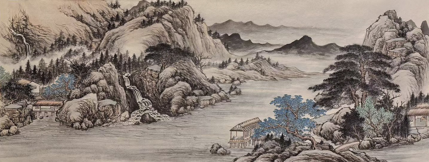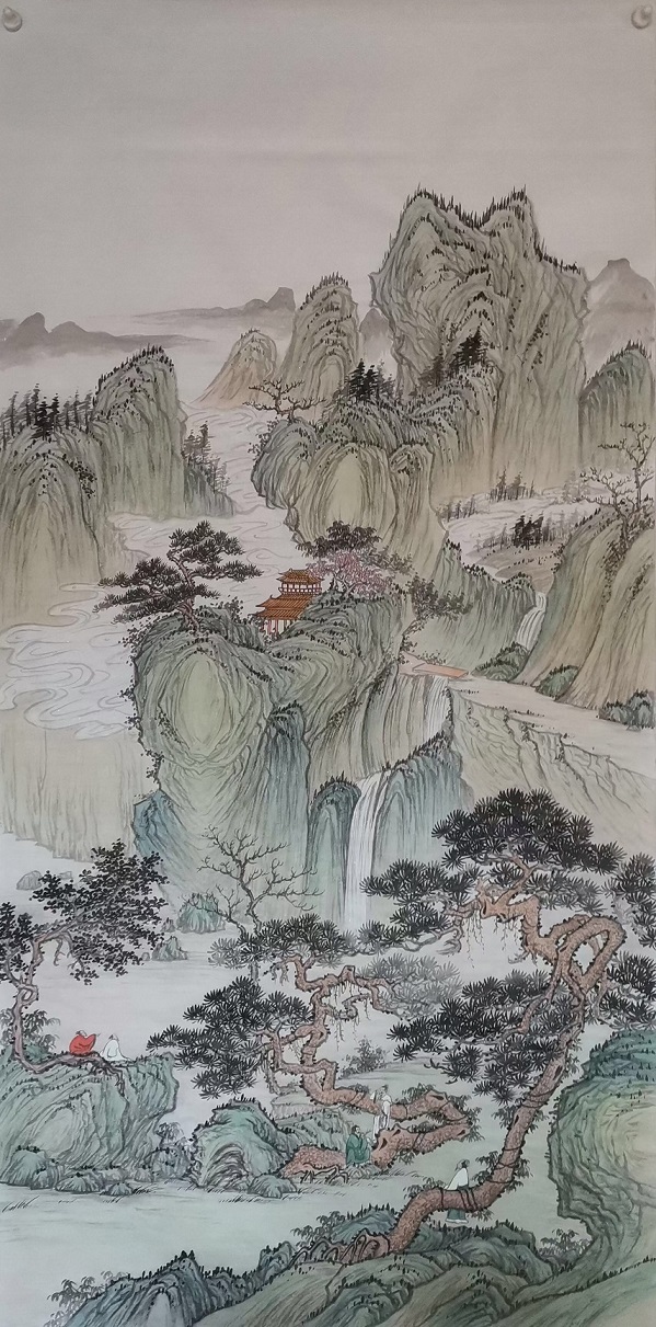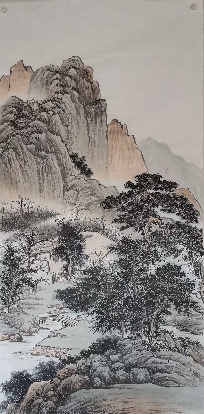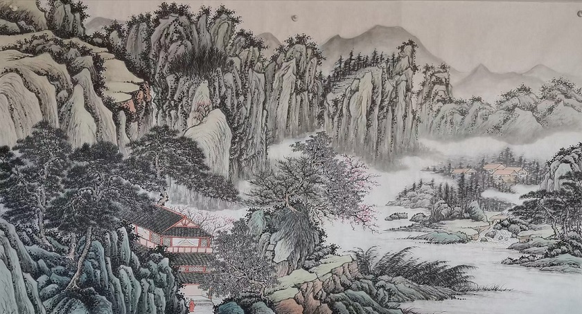 流水有情,青山有意,仁者乐山,智者乐水。国画山水画作品源远流长,而仿古山水画正是承载了古人圣贤对山水的钟爱,是现代文人雅士,书画圣贤追求古典雅韵的艺术形式。刘祥明先生笔下的仿古山水画作品,以仿古的风格将笔墨晕染、构图饱满、格调独特的意境在画中很好的体现出来。设色明丽,意境弘古,在一些遵循传统笔墨精华、师古而不泥古的作品中,我们感受到了具有笔墨韵味和色彩感的画作具有的独特魅力。作品以仿古的风格将笔墨精细、构图饱满、色彩细腻的山水美景在画中很好的体现出来。古朴凝重,个性鲜明。自成一家,给人以疏阔大度之感,画法严谨古朴,师古人而创新,进一步发挥了笔墨清润的特点,气韵生动,骨法用笔,是幅不可多得的佳作,具有很高的艺术价值,极具投资收藏价值。刘祥明先生的仿古山水画秉承传统笔意,明快而不失厚重,内敛不失张力。古意然然,勾勒有质感,全局有立体感,画面中山势挺拔,奇石罗列,草木生长于山中,浮云流动于天际,一条碧波缓缓流淌,静谧安宁,似有悦耳的水流之声传入耳帘,秋意浓浓,山风扑面,掩映于山林之间的屋舍,自然古朴,画中船舱上身着白袍的古人盘膝而坐,似是在参禅悟道,让人暂且忘却了生活的嘈杂和疲乏,忘情山水间。
