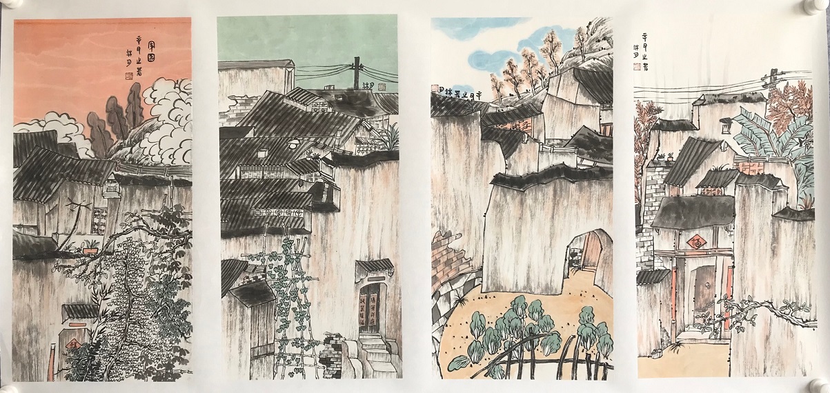 在作品形式上,他认真研究多种绘画元素,博采众长,将传统的笔墨、古人的线条、现代的生活融合在一起,兼收古代与当代之长,使墨彩交相辉映。在他的画作中,不仅体现着浓郁的生活气息,同时,又不拘泥于现实,作品中体现着作者独特的人格心灵和审美价值取向,映衬着作者对现实生活的独到理解。