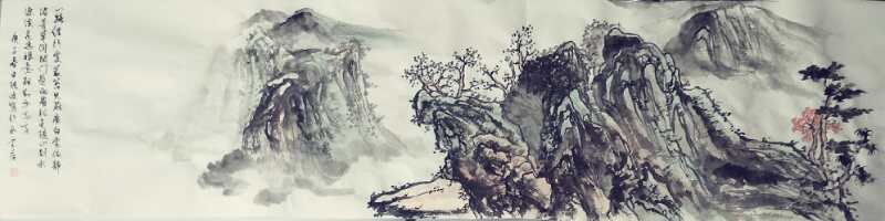 以书入画,让她的绘画作品拥有了文人画的雅致格调。可以积墨写山水之骨,笔笔卓劲,立骨雄浑。也可以泼墨写山水之神,形神兼备,气韵生动。画中有诗,带有王维写意山水的诗情画意,悦目耐赏。也带有张大千泼墨山水的雄才大略,引人卧游。高远置图,上屠浮云,下览深谷,在烟岚逸动的丰神中,把虚与实写意成禅,仰观山水,绝是依柴扉听神禅的魅力吸引,一幅山水必然陶冶情怀的禅释世界,由定入慧,水墨奇情!