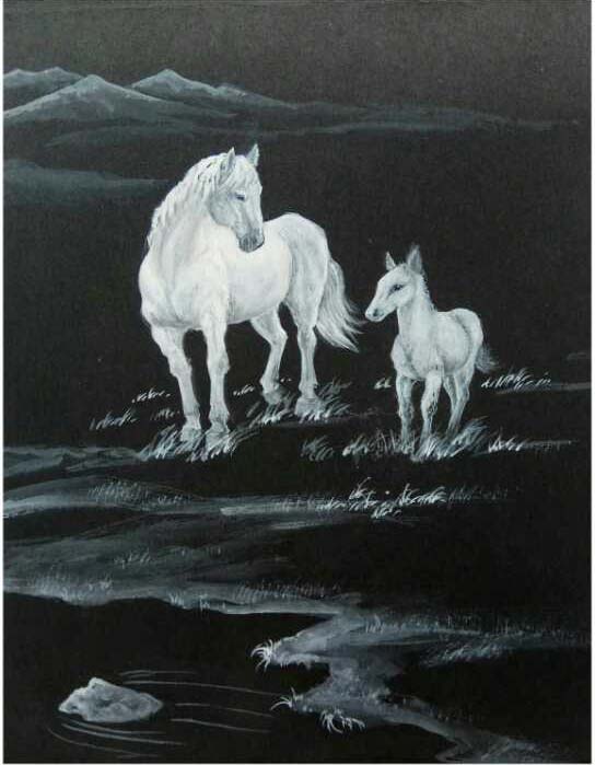 这幅作品通过对母马和幼马描绘,体现了母亲的慈祥和对孩子满满的爱,看了使人动容。技法上吸取了国画小写意和西画写实相结合的方法,可谓匠心独具。