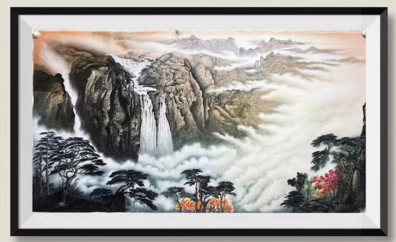 六尺整张 180x97cm《万里江山 盛世祥和》被人民大会堂收藏。