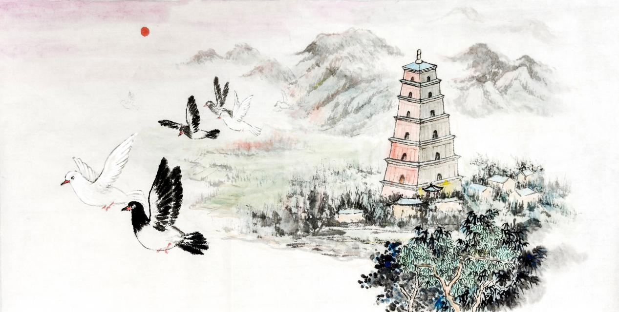“一带一路绘和平”水墨沙画系列,何应丽用一带一路沿线的标志历史文化、地标建筑,用21幅作品拼成一个长卷,作品以造型各异的和平鸽表达了对和平的愿望与期待!