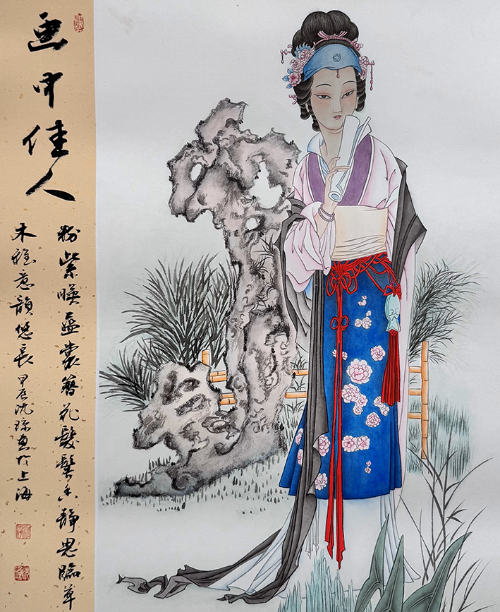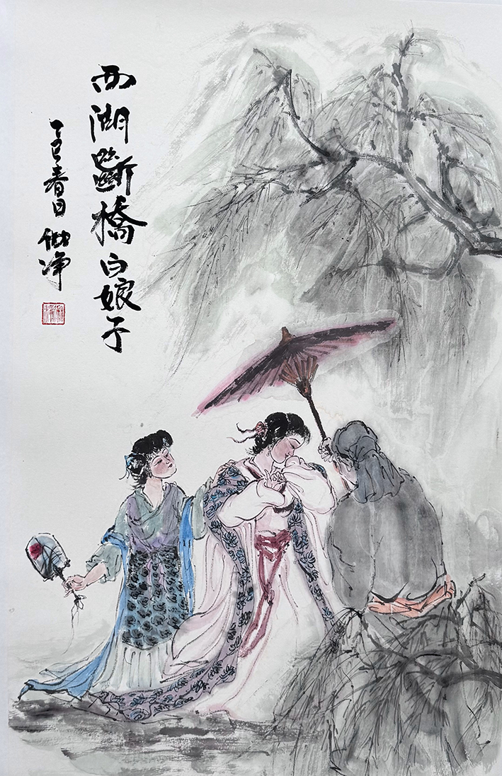 - 人物画:将古典神韵与现代气质结合,人物生动传神,尤擅刻画女性柔美与士子风骨。