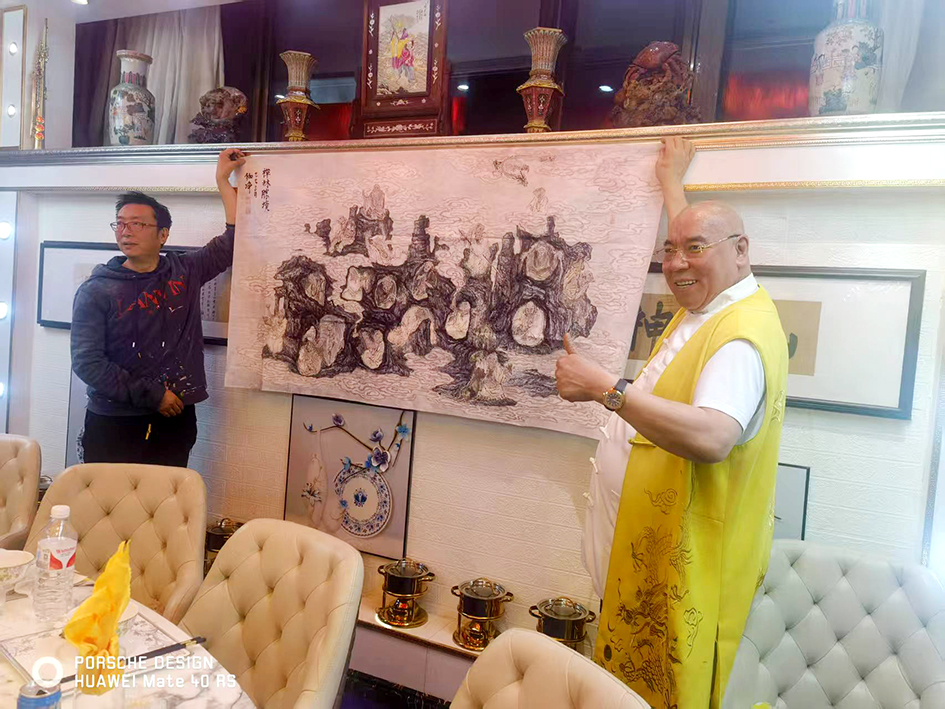 - 马云收藏佛教作品《法界天音》,用于静修厅陈设。- 陈一丹收藏《春山烟雨》,展示于丹桂书屋。