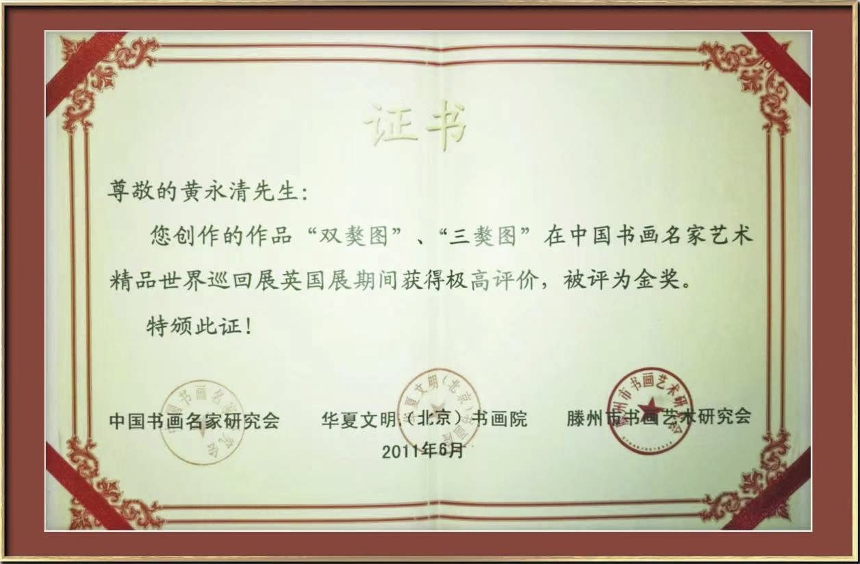 2011年6月荣获中国书画名家名作世界巡回展英国展金奖。