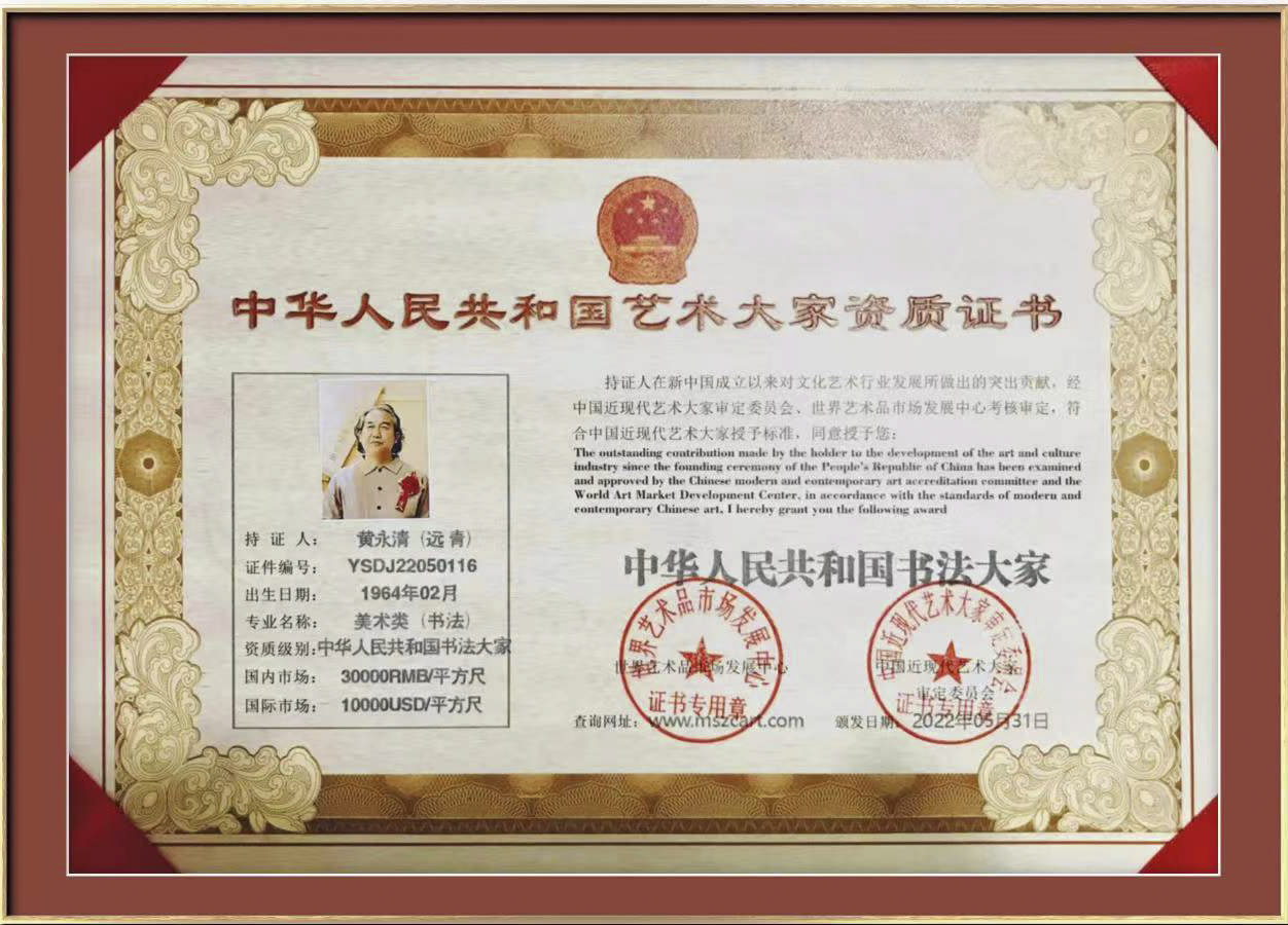 黄永清(远青),男,汉族,1964年2月生于四川荣县,号马石村夫、有意思主人,浑墨画獒创始人,斋名师獒堂。