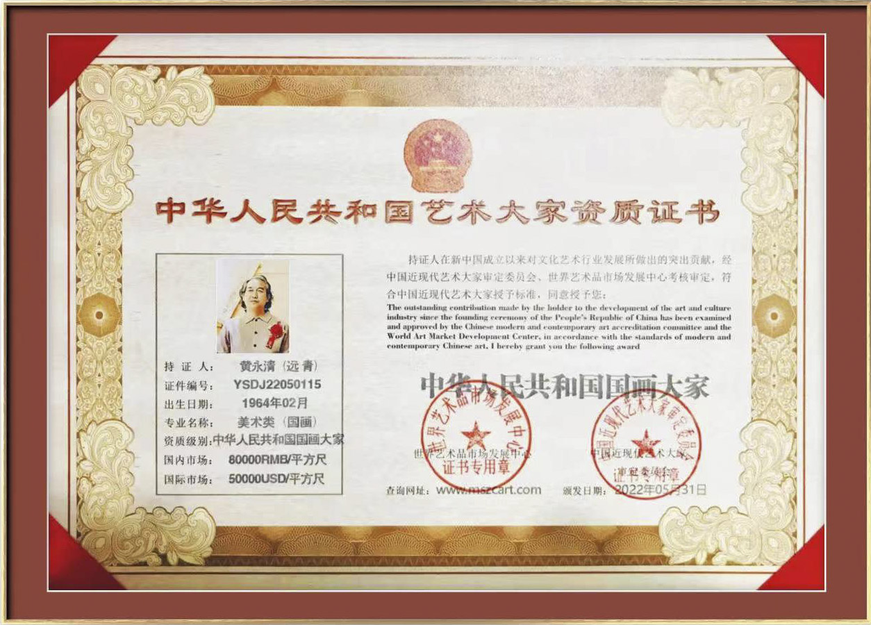 2022年荣获由中宣部、文旅部颁发的“中国爱国艺术家”终身荣誉称号,同获国礼艺术家、最具匠心艺术家、中华艺术人物、中华人民共和国艺术大家、国家级艺术大师等诸多荣誉。