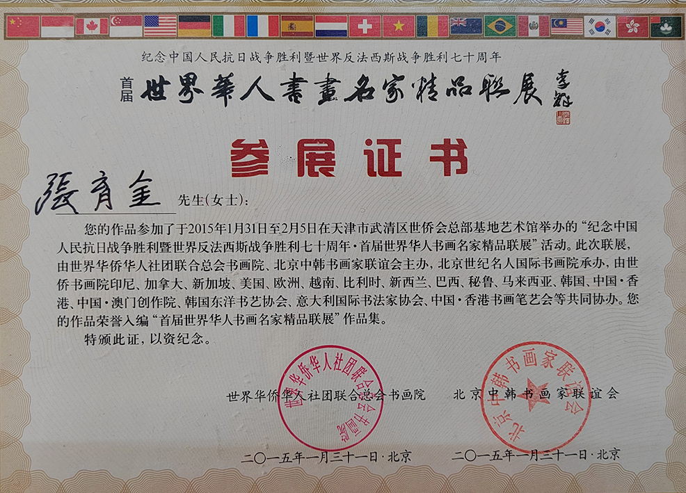 2011年特邀参加纪念辛亥革命100周年全球华人书画展;