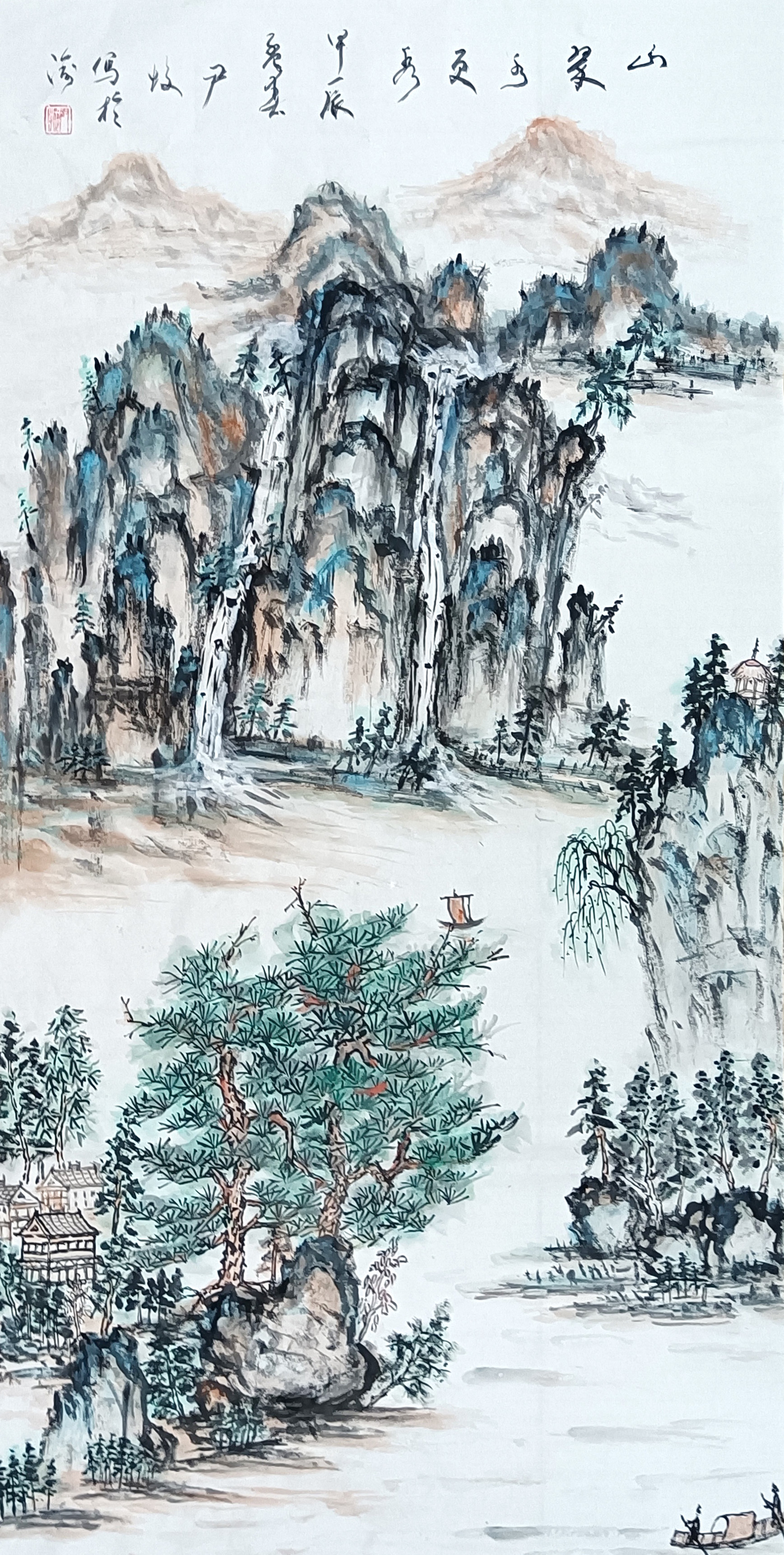 在绘画技法方面,认真学习中国画古法经典,融入书法的笔法技巧,虚心学习当代名家笔法,墨法,设色方面精妙技法,加上自己对传统,对时代的理解,大胆泼墨设色,使画面显得生动活泼,沉稳老辣,苍茫古拙。2022年7月参加了中央文化和旅游管理干部学院髙级书画人才线上研修班学习,听取了中国美协付主席徐里,美院博导李魁正,中国书协付主席张继,书协理事朱培尔讲座,受益匪浅。
