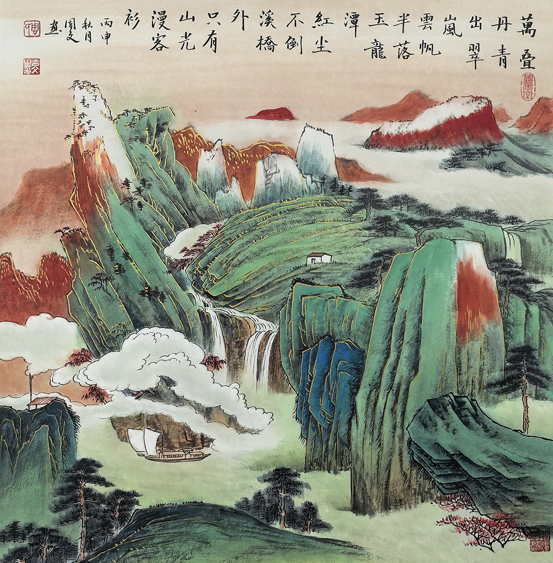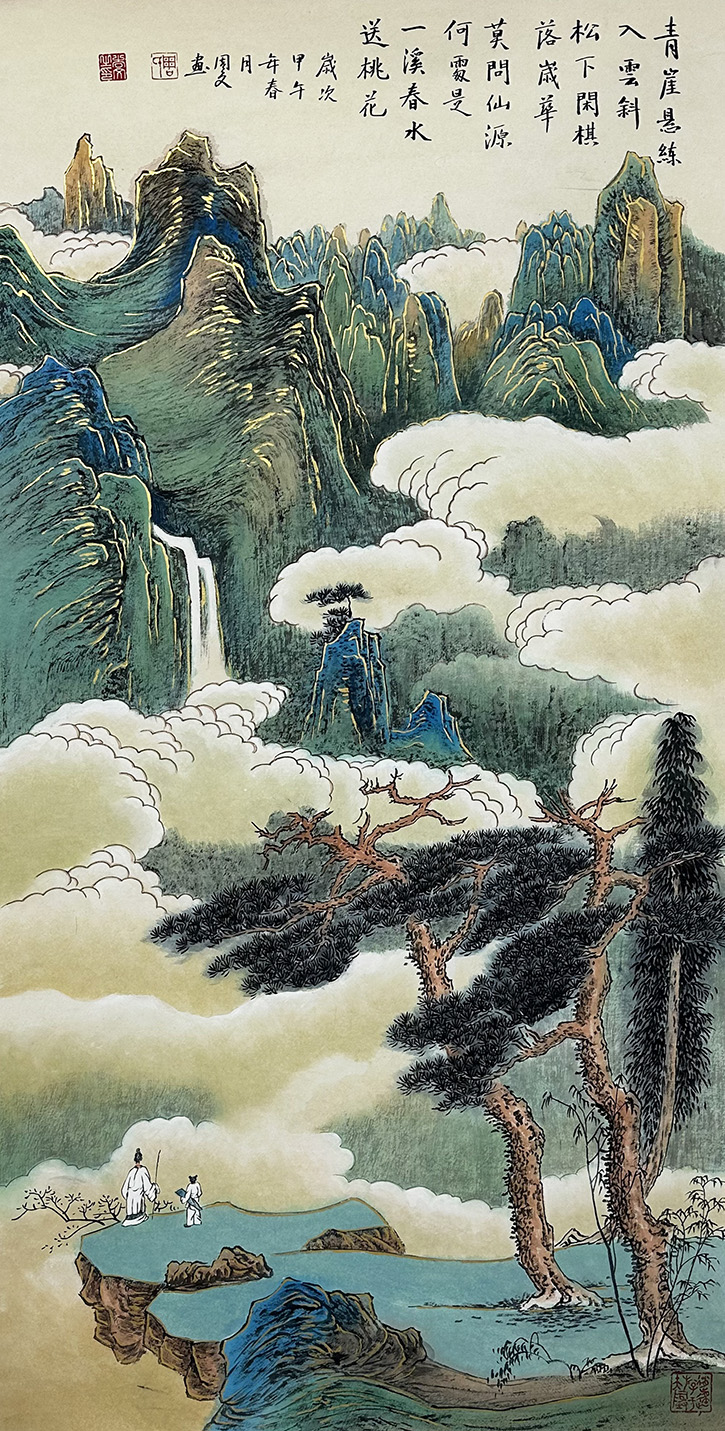 周吉文老师作品深受张大千先生的影响。在继承大千一脉的风采之上,又融合个人风格与时代特色,形成独具一格的画风!