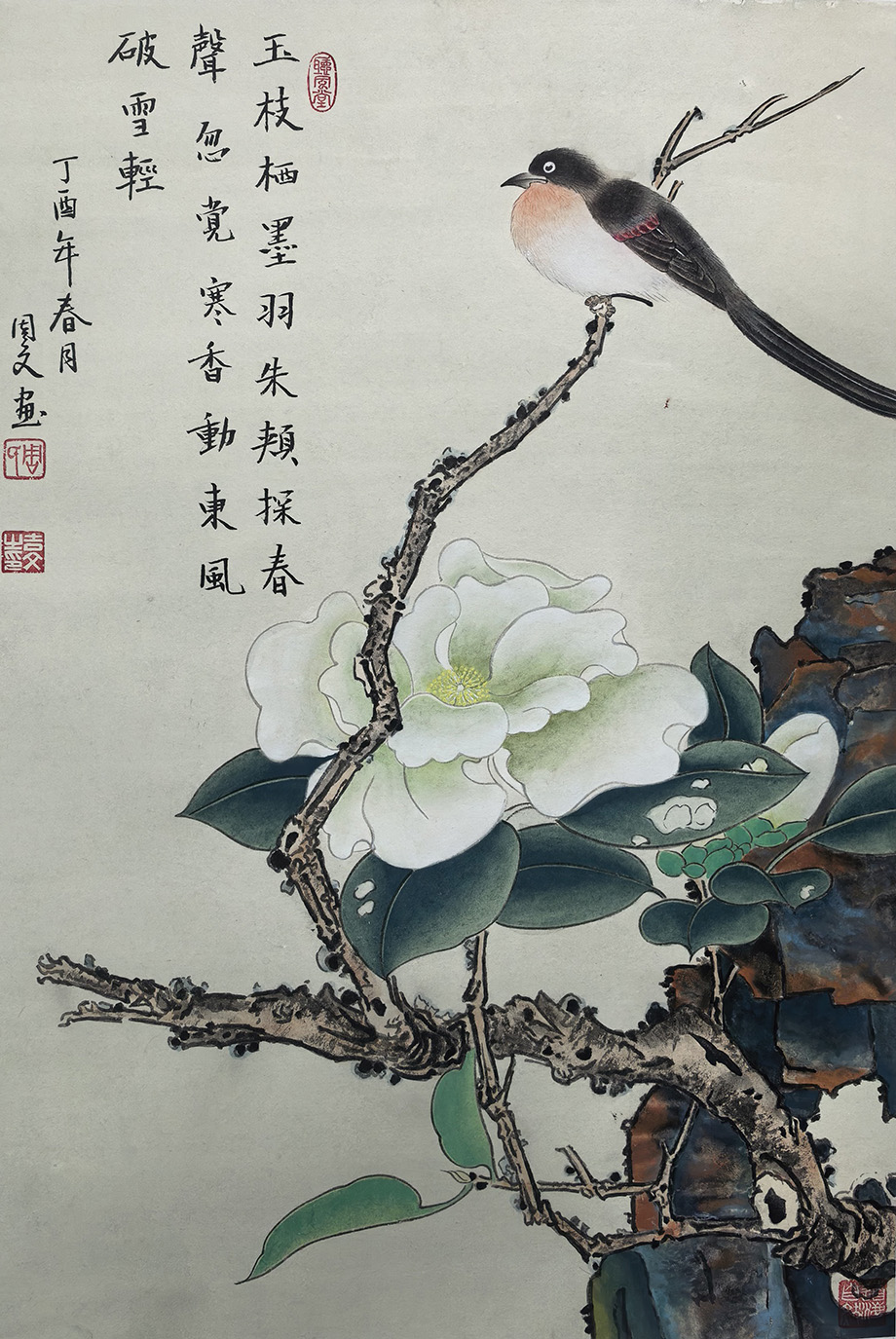 张大千在青城山隐居时。其父是张大千好友。在父亲极力要求下,周吉文自幼就跟随张大千在青城山习画,并得张大千真传,是张大千最喜爱的儿徒。他画的花鸟草虫、山水、人物深得大千精髓,功底深厚,深受中外藏家喜爱。