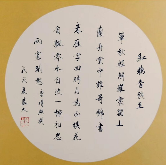 蓝天,四川成都人,男,1962年生。自幼酷爱书法, 幼承家学,成长于书香世家蓝家大院。蓝天老师继承恩师-童韵樵先生艺术造诣与处世哲学,深耕蜀中书画圈层数十载,受各界人士尊重与爱戴,其书法作品多次入选省市展览并被各界人士收藏。书法家、诗人。中国书画研究院研究员,四川现代国画院副院长,成都市残联书法家协会会长、成都益州书画院副院长。