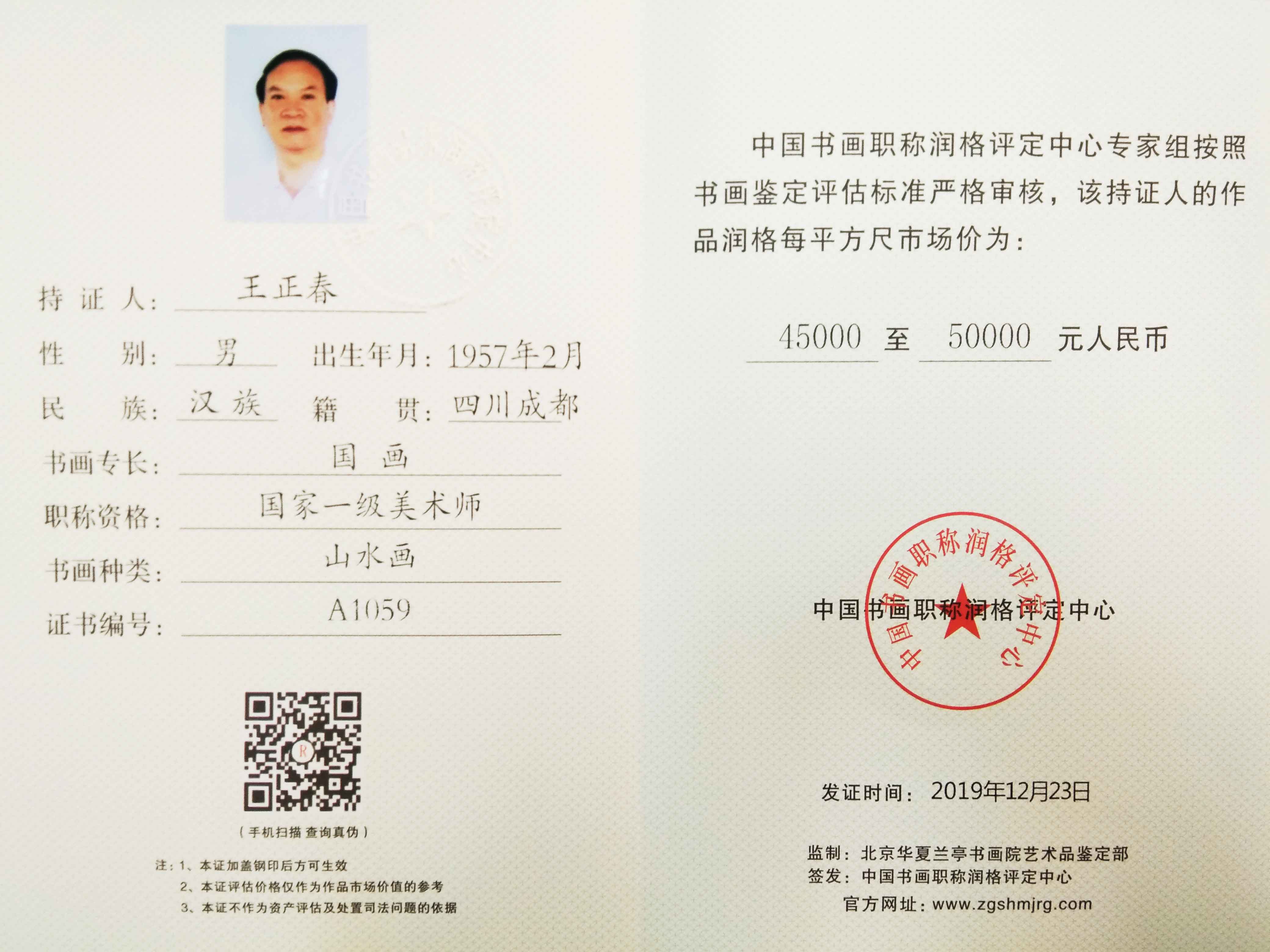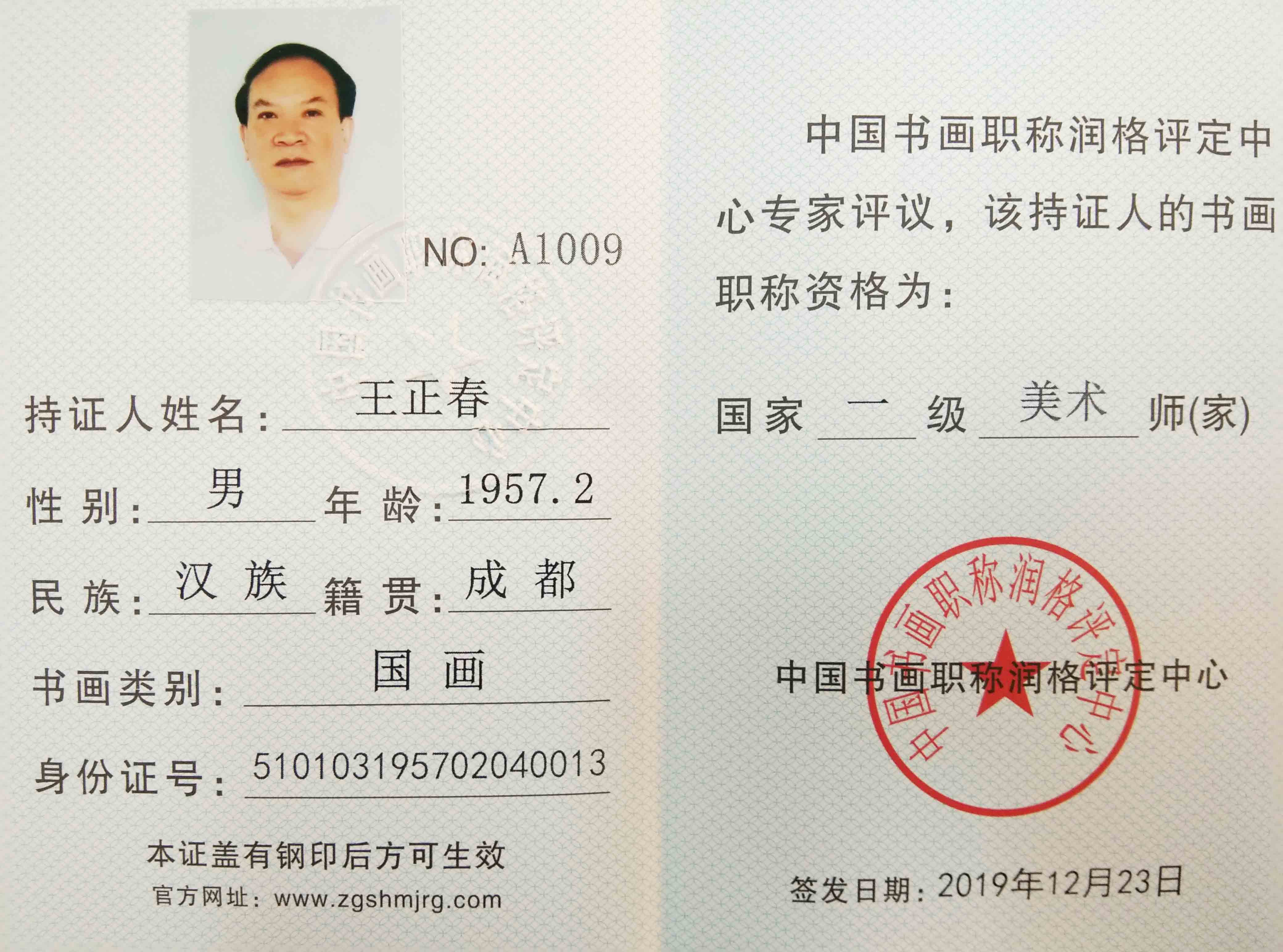 王正春,四川成都人,国家一级美术师,中南海国礼书画家。国家评价市场润格50000元/平方尺。张大千再传弟子、师承王永年、龙国屏两位大师,为大风堂画派传人。现任四川东方张大千研究中心艺术总监、中原书画院客座教授、中国书画艺术委员会会员、中国书画家协会理事、中国华夏书画院秘书长,华夏文化促进会外事国宾礼特供艺术家。四川省美术家协会会员、成都市美术家协会会理事、中国书画报特聘画师、荣宝斋(成都)有限公司签约艺术家。