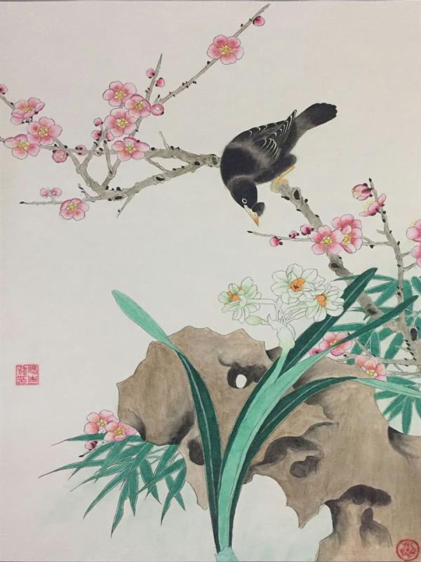 观其书画作品写意用笔泼辣,传统笔墨技法扎实,在继承传统的基础上,更注重现代意识的融汇开拓,构图布局气势恢宏,墨色浓淡有致且题材丰实,再现生活情趣之盎然是其作品的一大特色。更擅工笔,其笔法细腻,线条扎实,用色讲究。其构思巧妙、酣畅淋漓的作品极具视觉冲击力,常受到观摩者的啧啧称道。