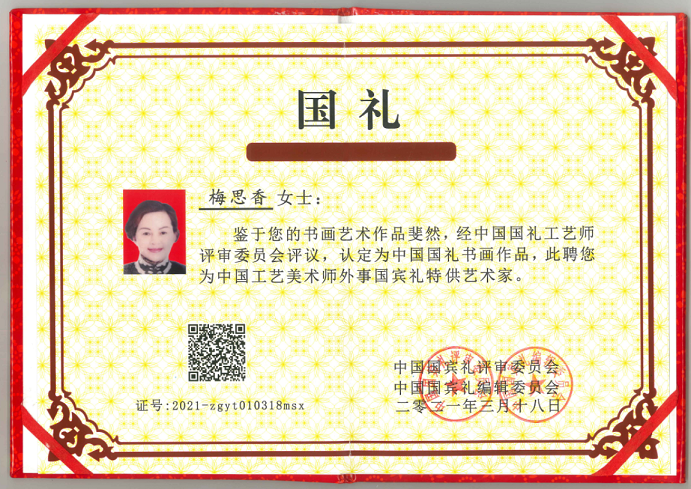梅思香,又名梅诗湘,毕业于中国美术学院,珠宝设计师,工艺美术师,花鸟画家,诗人。