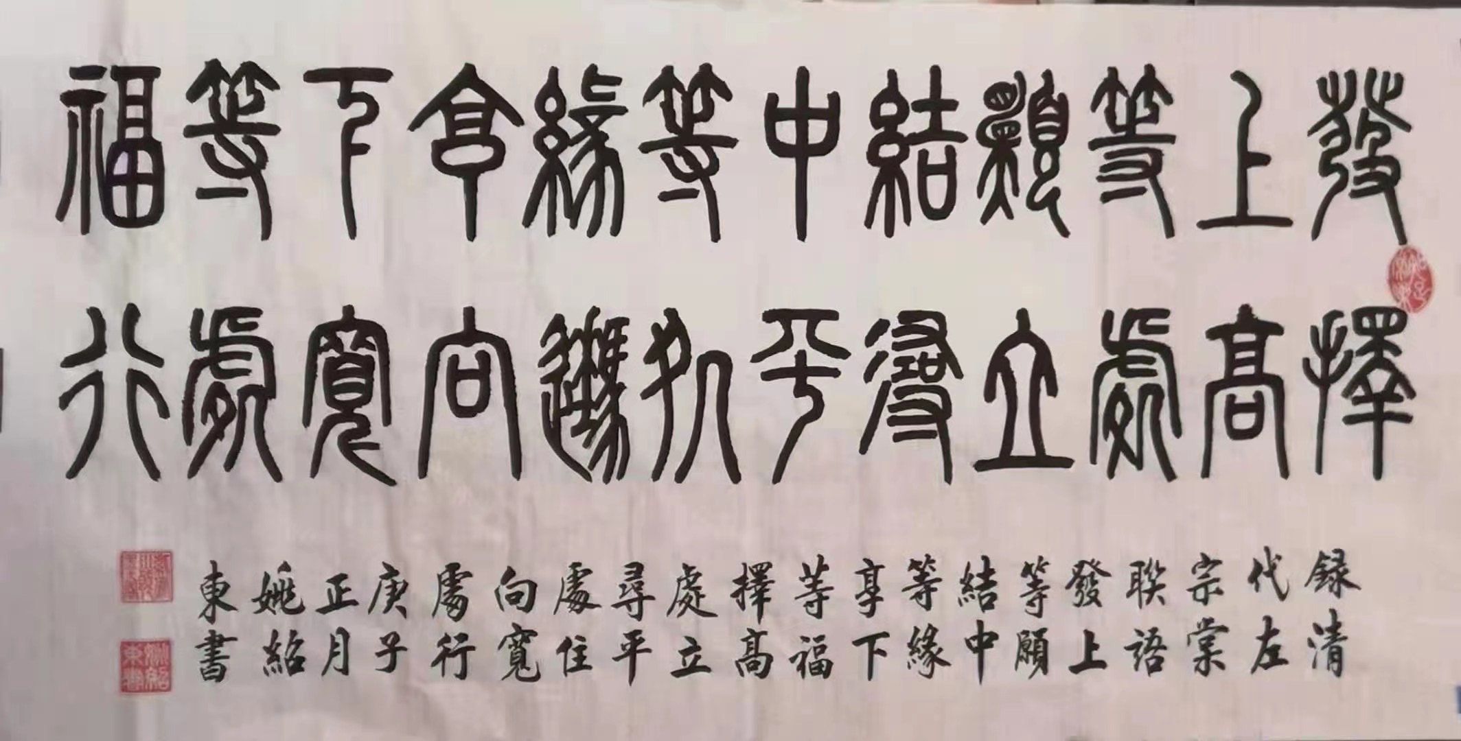 自幼生性好学,酷爱写字。因家庭特贫困就以地、石、墙为纸,以棒、石、手指为笔,以水为墨;以民间家具上的字为帖,上学后以授教老师的课堂粉笔字和课本字为范字,在社会大熔炉中以所有能弄墨者为师、以其精华为活范帖。人生旅程几十年中,以业余时间靠多观察、善意念、勤应需为练字途迳自成功力,力求于自然和规矩写字,秉持厚重而不失飘逸、灵动而不失庄严之书风,会篆、隶、楷、行、草、魏碑各字体,擅长楷、行、隶,并擅写印刷体。