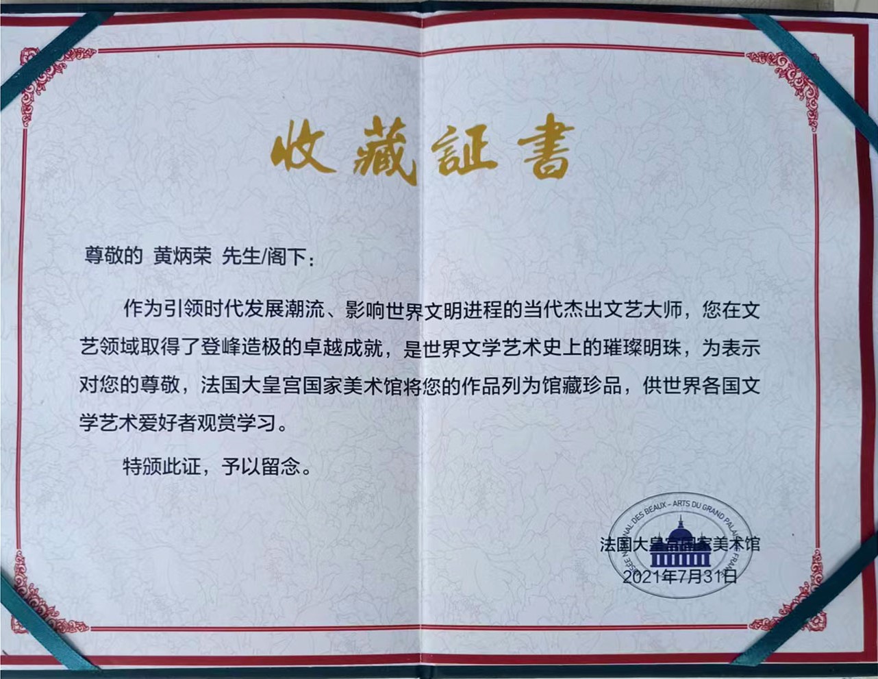 其作品被法国大皇宫国家美术馆收藏。现为中国当代艺术协会副主席,宋庄国际书画院终身院长,世界华人文艺家协会副秘书长,中国写生会精英会员,国家一级美术师,绍兴三味书画院院士。