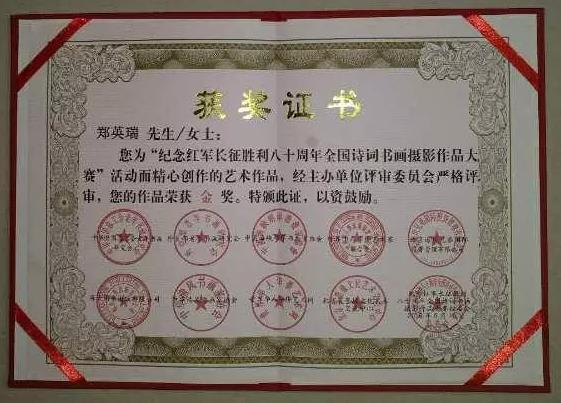 郑英瑞,男,中共党员,浙江温州永嘉人。现为楠溪书画协会副会长,永嘉县书法协会会员,温州市诗词楹联学会会员,欧盟文化总暑 中国书画家协会常务理事,中国书画研究院理事,被中国文化遗产保护研究院评定具有“中国书画家”资格。2013年结业于清华大学全国美术理论研究与书画创作书法高级研修班,2016年结业于中国书法家协会书法培训中心温州临贴班。现就读于中国美术学院书法高级研修班。2015年有三幅书法作品被中国文化遗产保护研究院收藏。2018年中国大健康产业高峰论坛暨“中国梦、健康梦、书画梦”颁奖盛典,9月7日至8日在中央电视台星光大道演播厅隆重举行,本人受邀参加了盛典并荣获“2018年中国当代最具创新书画家”荣誉称号。